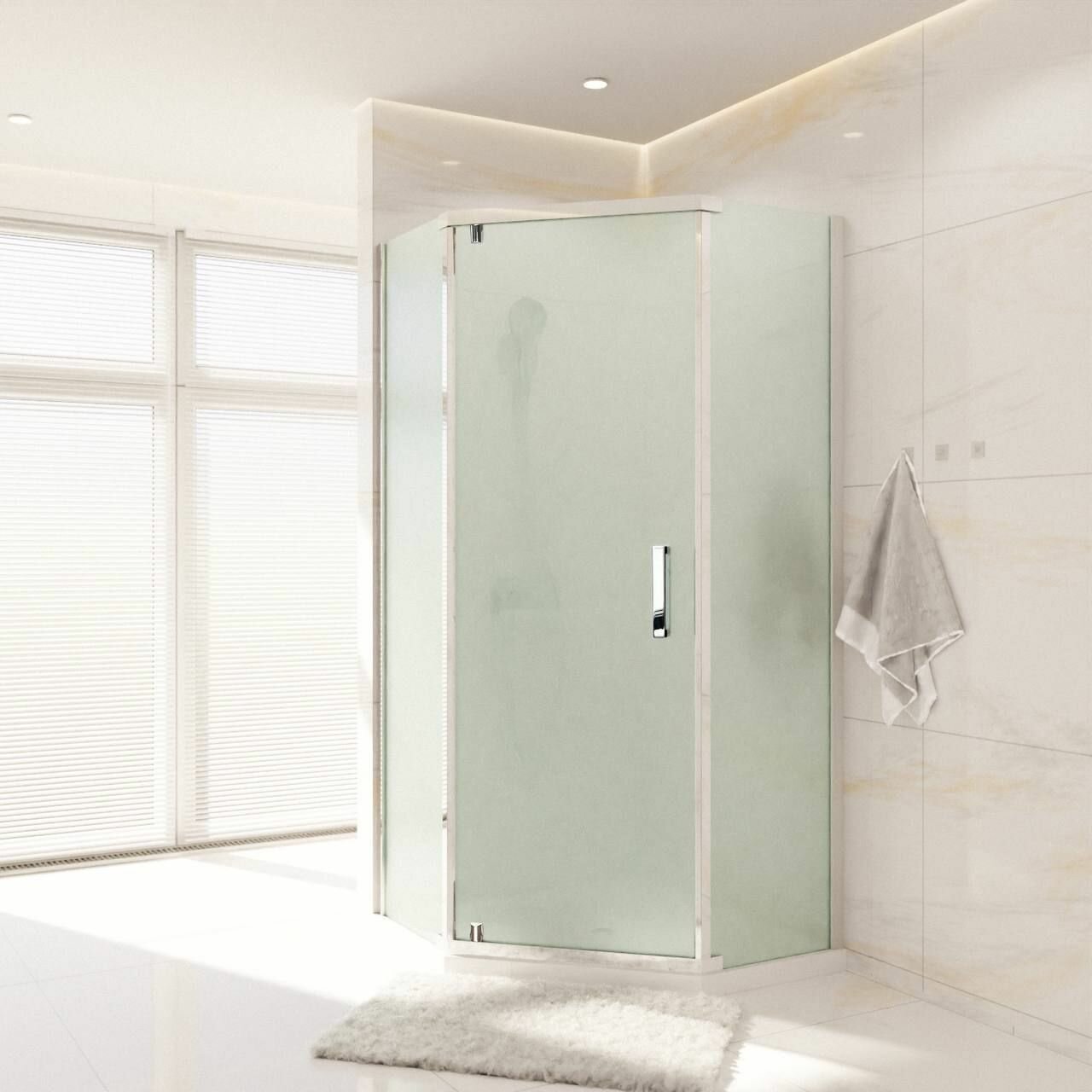 Душевой уголок Royal Bath стекло матовое профиль белый 6мм трапеция 85х85х200