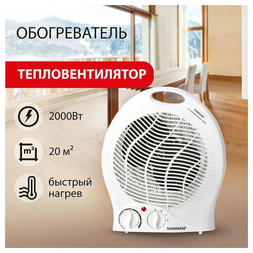 Тепловентилятор SONNEN F-200, 1000/2000 Вт, 2 режима работы, белый, 453493 интересное: