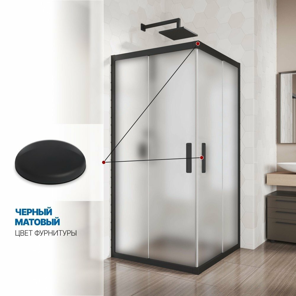 Душевой уголок GWMPKB019SC 95x95 см, цвет фурнитуры черный матовый, цвет стекла матовый, стекло закаленное 6 мм