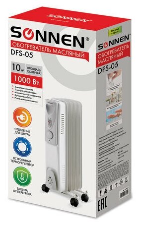 Обогреватель масляный SONNEN DFS-05, 1000 Вт, 5 секций, белый, 453497 интересное: