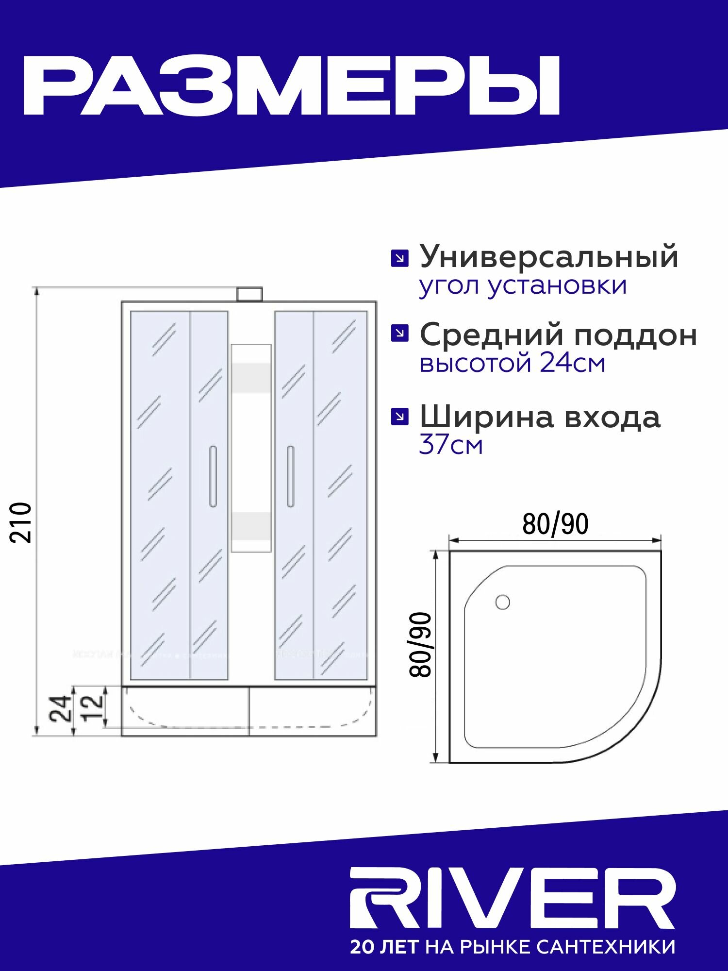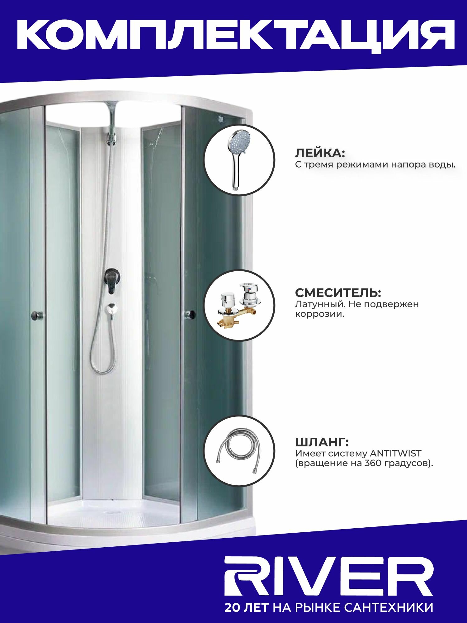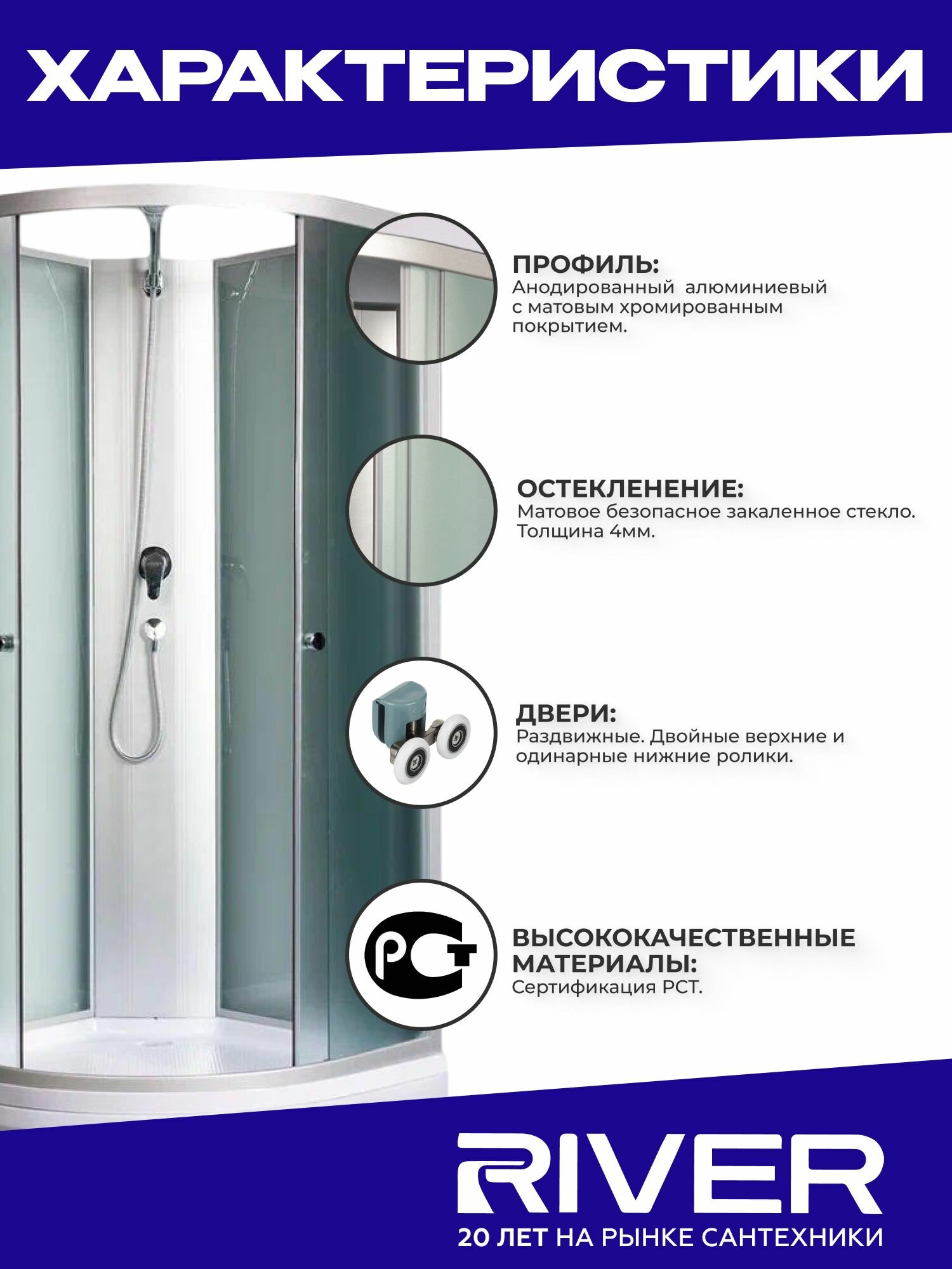 Душевая кабина River NARA LIGHT Б/К XL (80x80) средний поддон, стекло матовое, универсальная интересное: