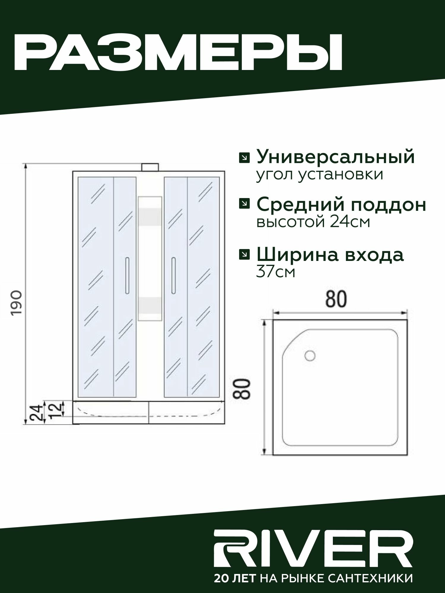 Душевая кабина River NEVA Б/К (80x80) средний поддон, стекло матовое, универсальная интересное: