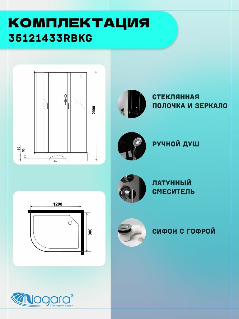 Купить Душевая кабина Niagara Classic NG-3512-14RBKG (120х80х200) низкий поддон(13см), стекло тонированное,3 места