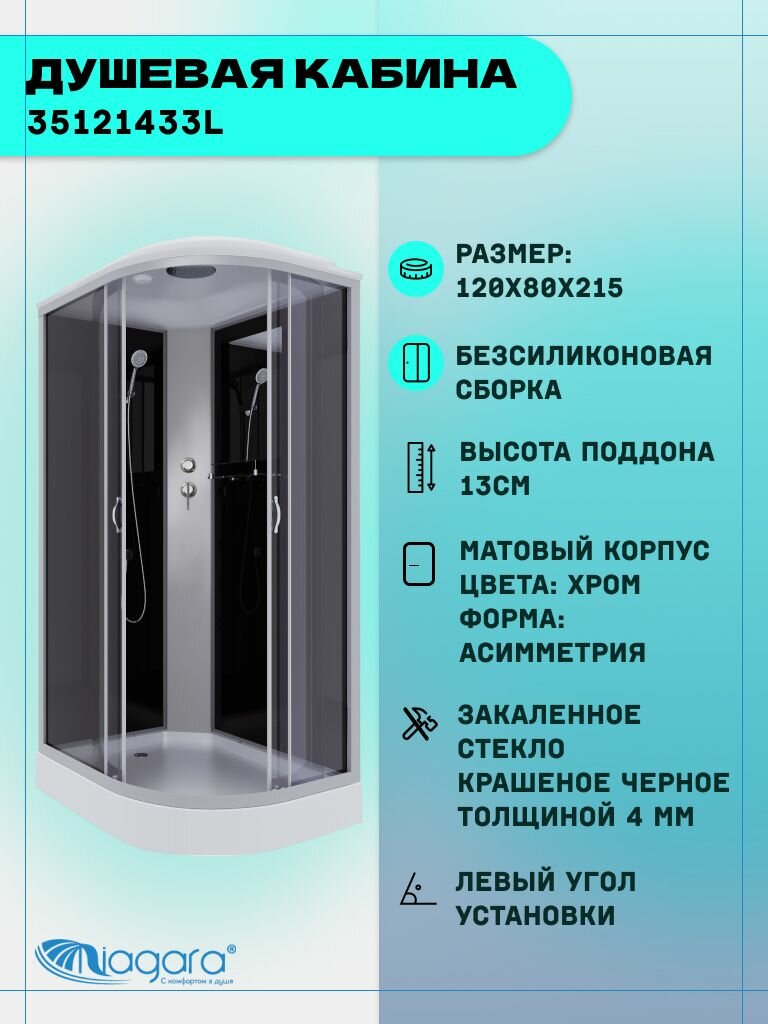 Душевая кабина Niagara Classic NG-3512-14LBK (120х80х200) низкий поддон(13см), стекло тонированное,3 места