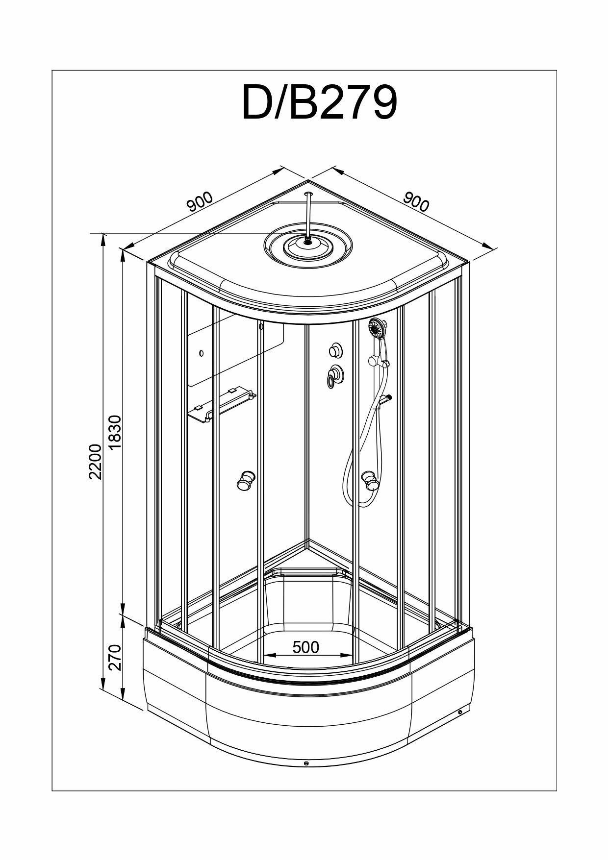 Купить Душевая кабина Deto D279S (90х90х220) средний поддон, стекло матовое