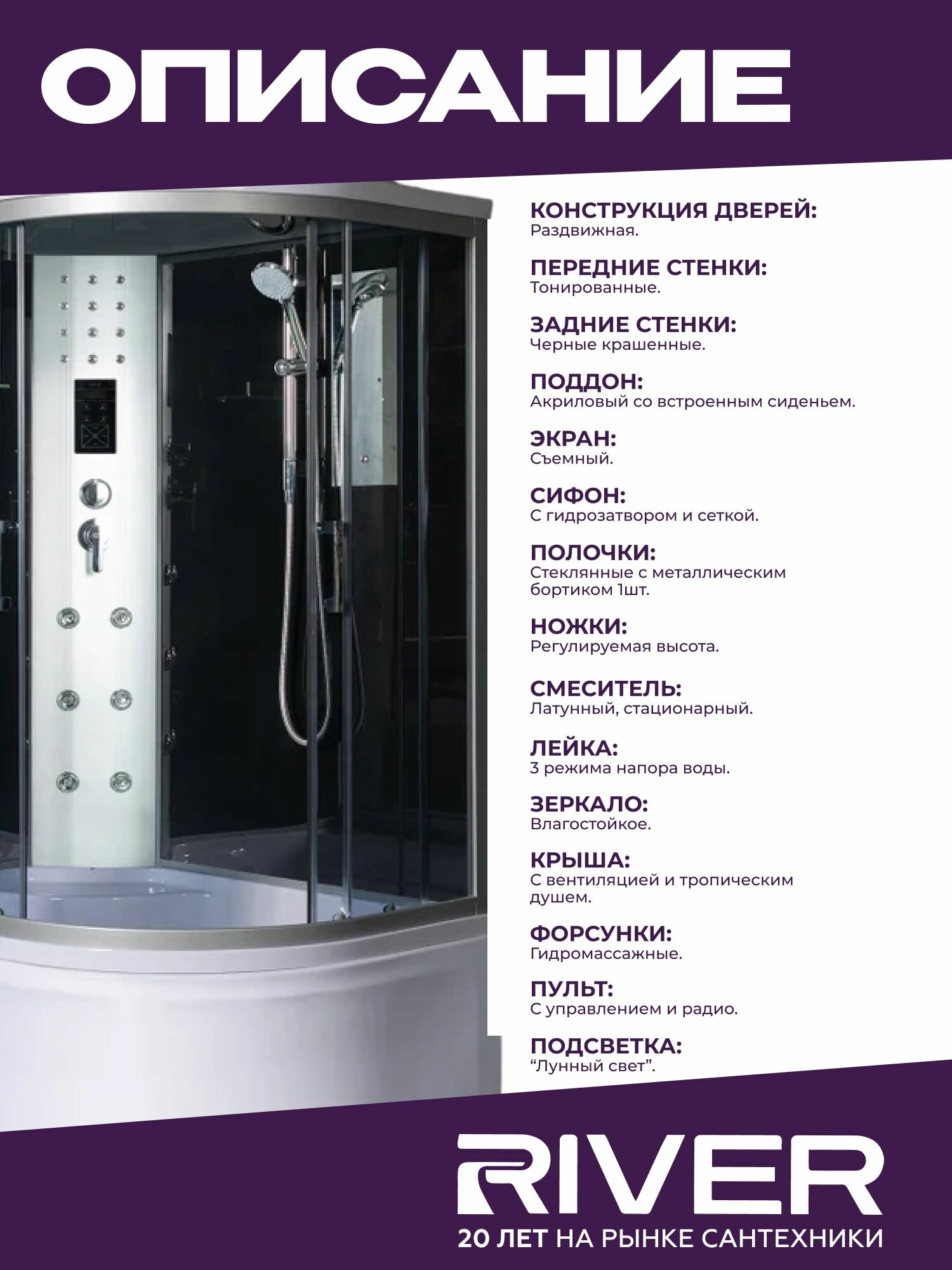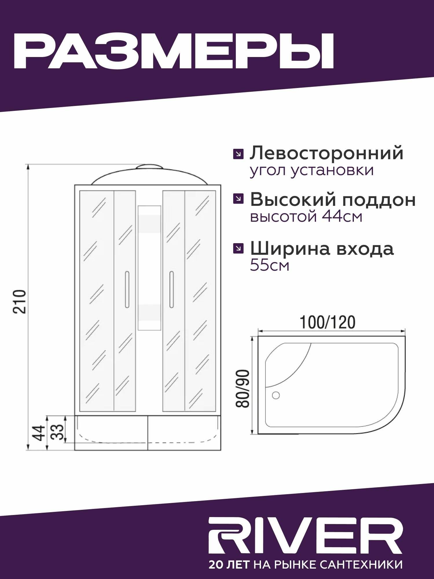 Душевая кабина River DUNAY (120x80) высокий поддон, стекло тонированное, левосторонняя интересное: