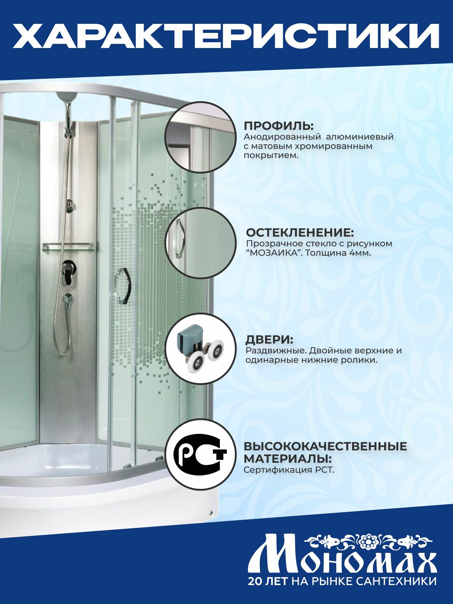 Душевая кабина мономах (100x80) средний поддон, стекло мозаика, правая, без крыши интересное: