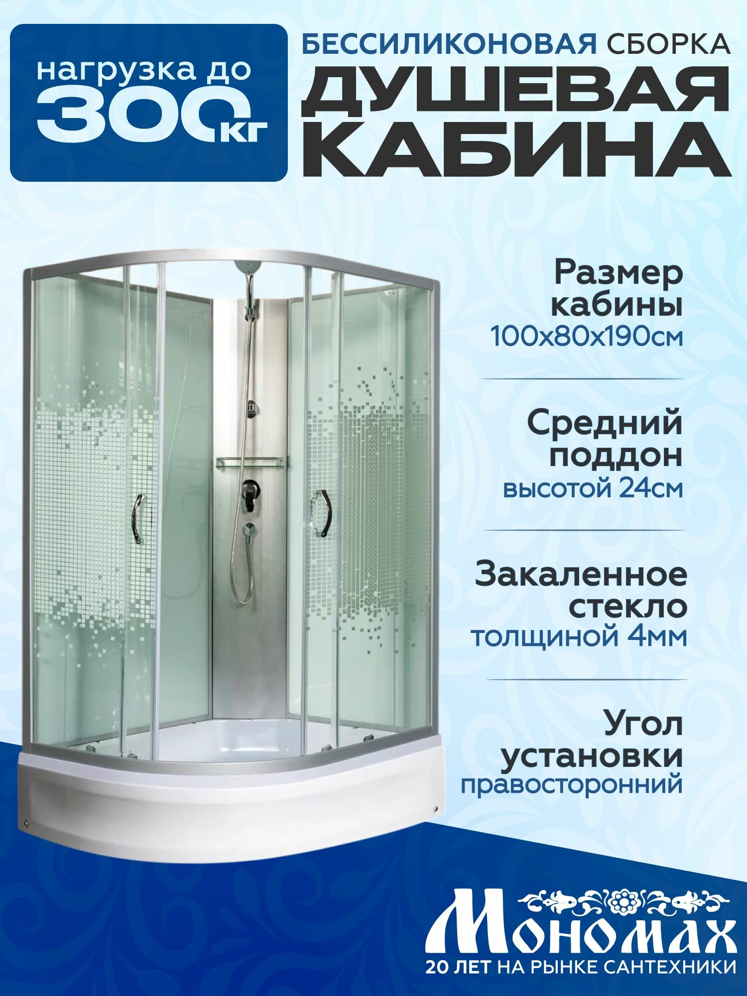 Купить Душевая кабина мономах (100x80) средний поддон, стекло мозаика, правая, без крыши
