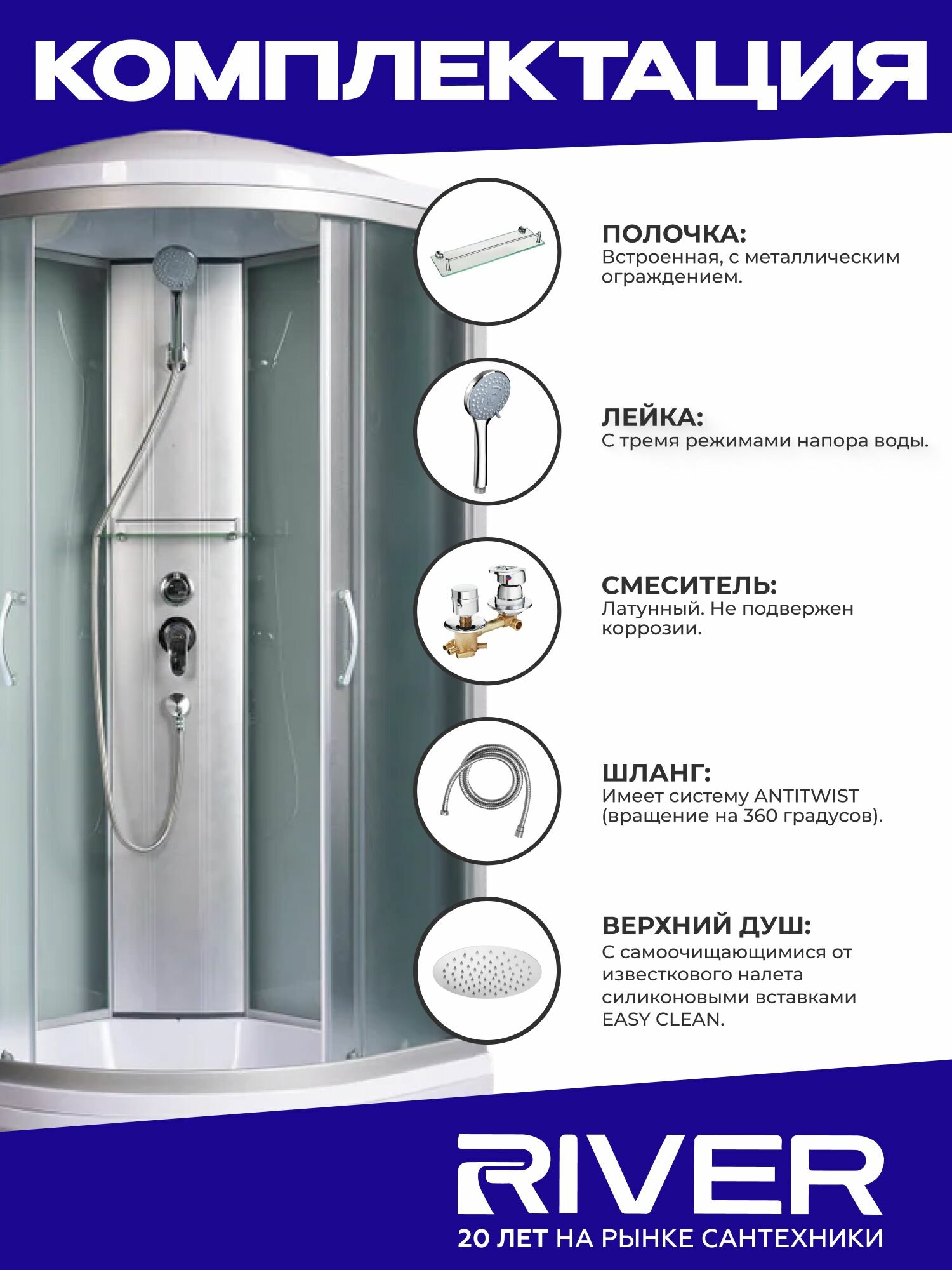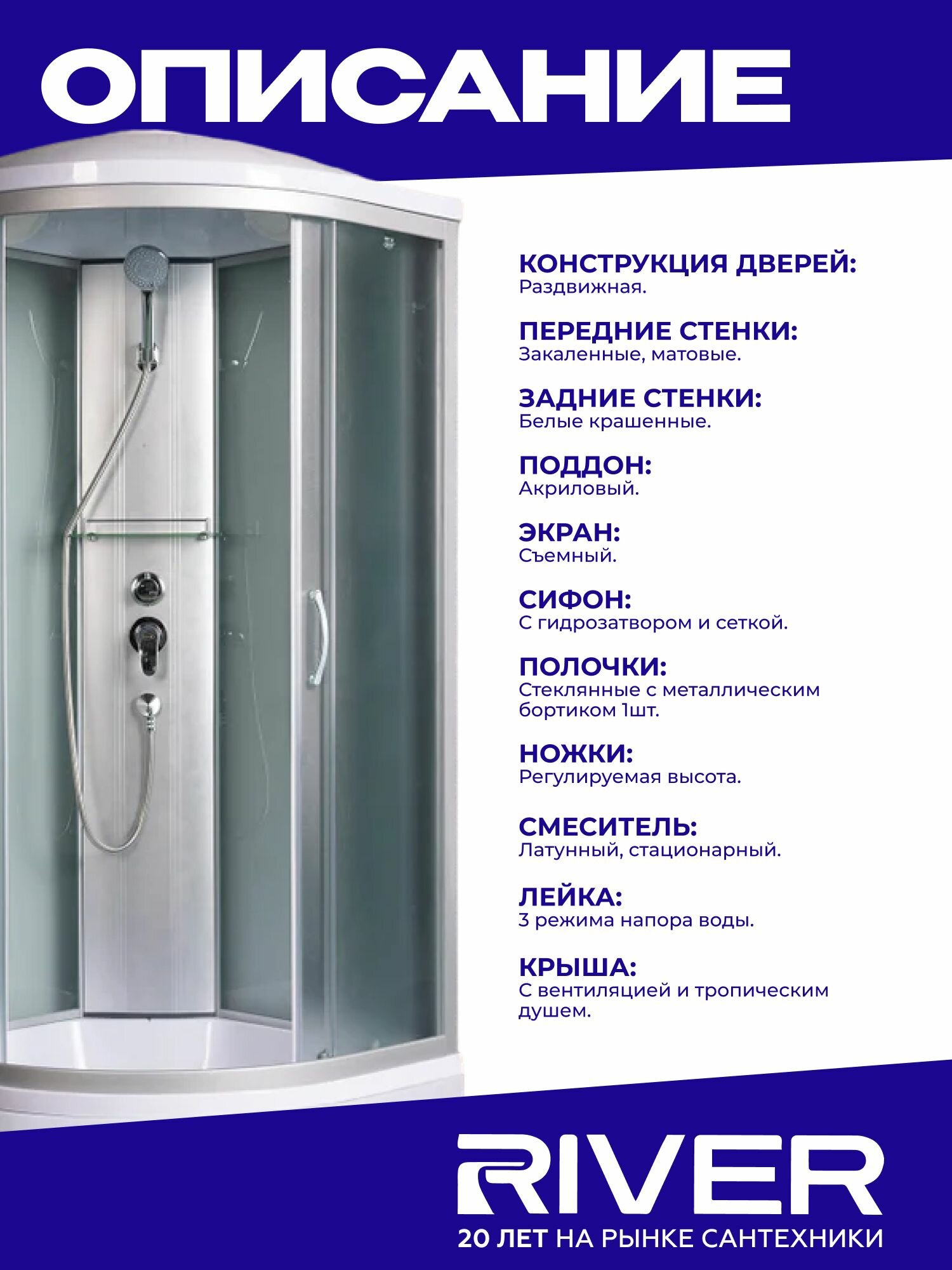 Душевая кабина River NARA (90x90) средний поддон, стекло матовое, универсальная интересное: