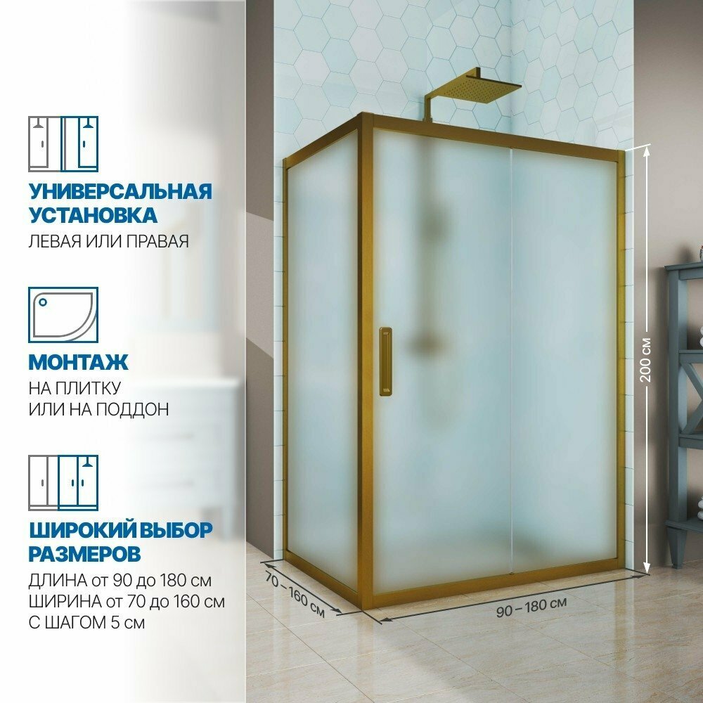 Душевой уголок GWMPKB019R 85x120 см, цвет фурнитуры бронзовый, цвет стекла матовый, стекло закаленное 6 мм