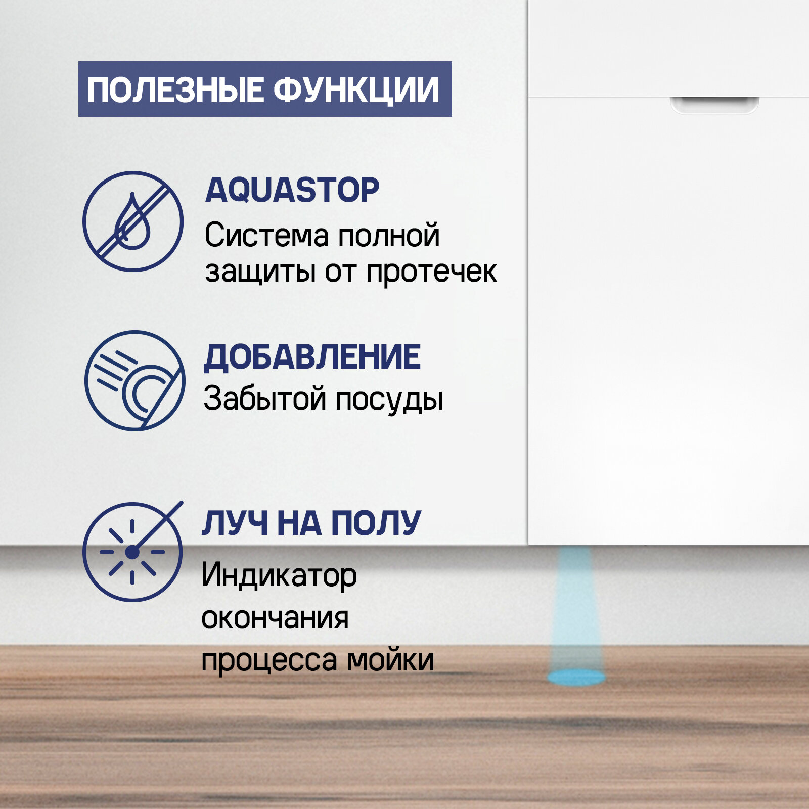 2. 9 программ 3. луч на полу 4. таймер отсрочки 5. защита от протечек 6. низкий расход электроэнергии 7. комплектация 8. дизайн |