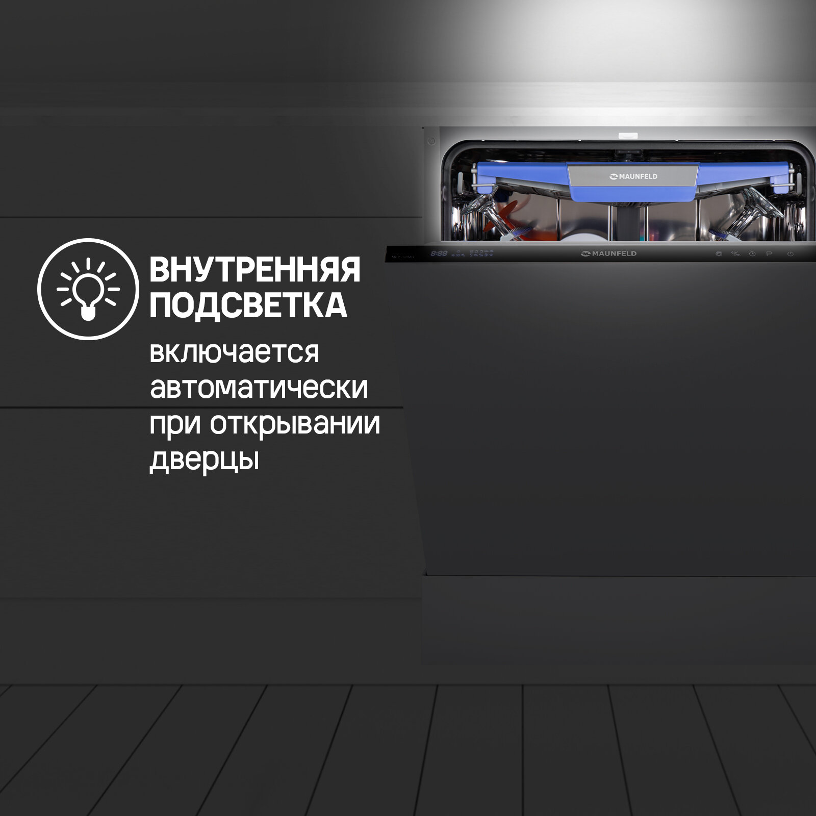 Посудомоечная машина с Vortex Wash, турбосушкой и лучом на полу MAUNFELD MLP-12IMR