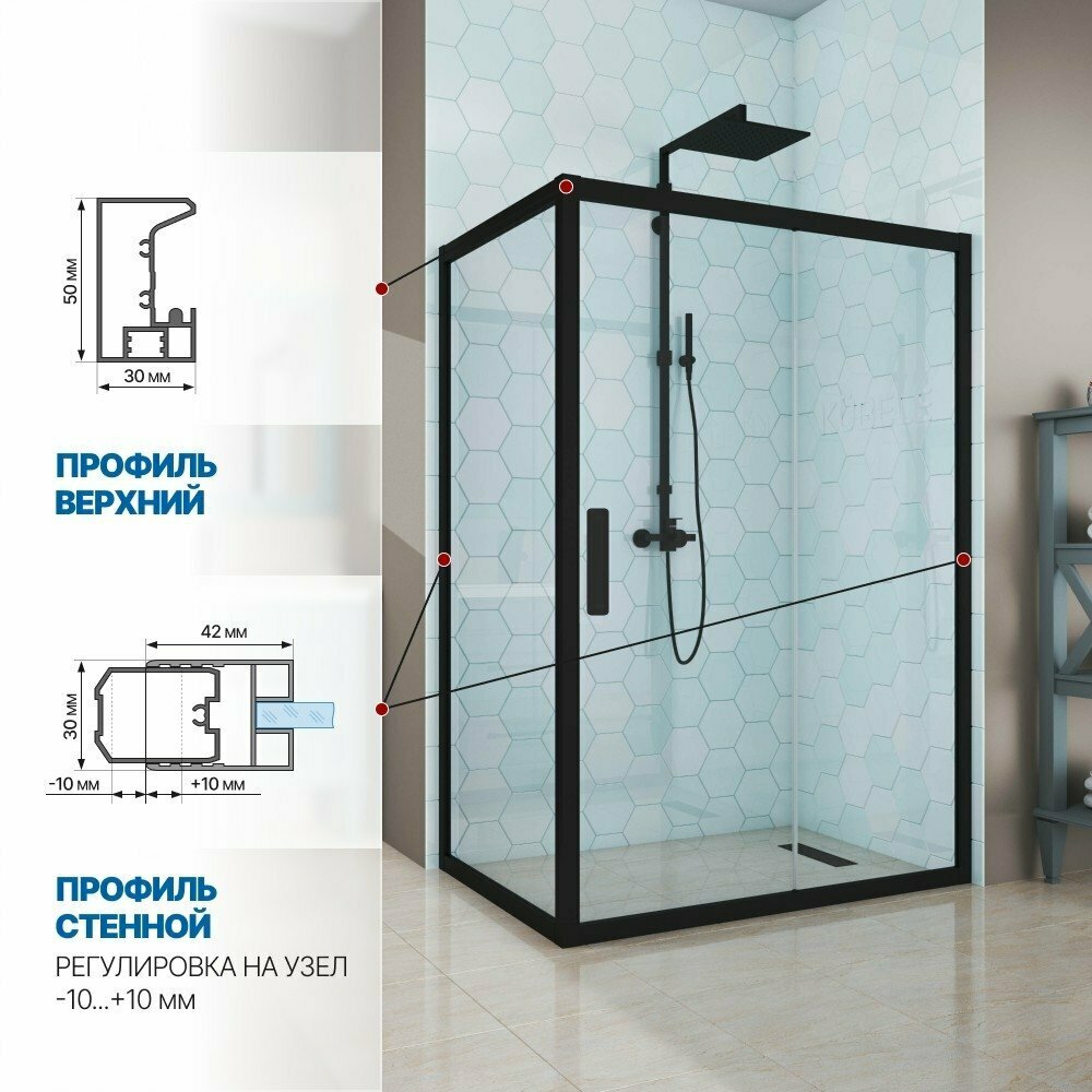 Душевой уголок GWMPKB019R 110x100 см, цвет фурнитуры черный матовый, цвет стекла бесцветный, стекло закаленное 6 мм