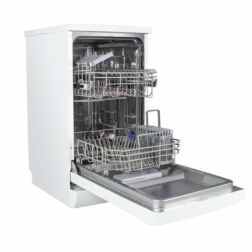 Посудомоечная машина MAUNFELD MWF08B отдельностоящая, узкая 45 см, 9 комплектов, 6 программ, 2 корзины, половинная загрузка, белая