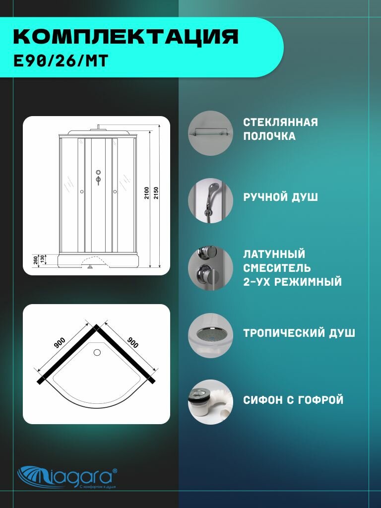 Душевая кабина Niagara Eco E90/26/MT (90х90х215) средний поддон(26см), стекло матовое,4 места интересное: