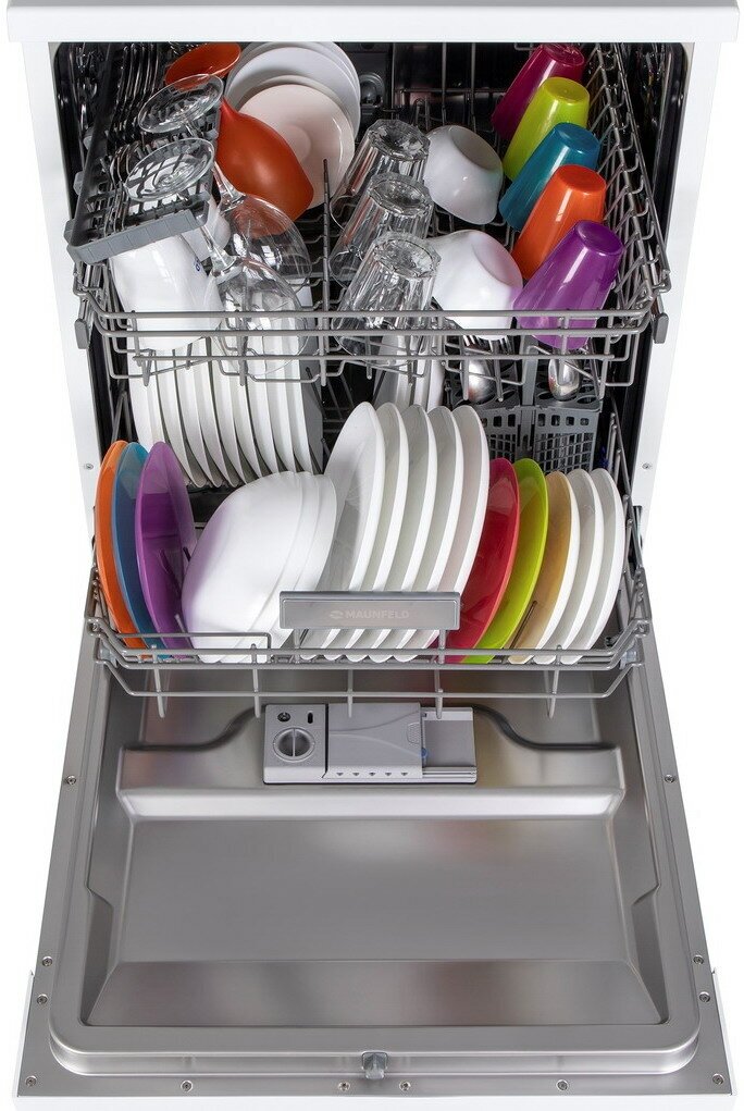 Посудомоечная машина MAUNFELD MWF12S отдельностоящая, полноразмерная 60 см, 12 комплектов, 5 программ, 2 корзины, половинная загрузка, режим быстрой мойки