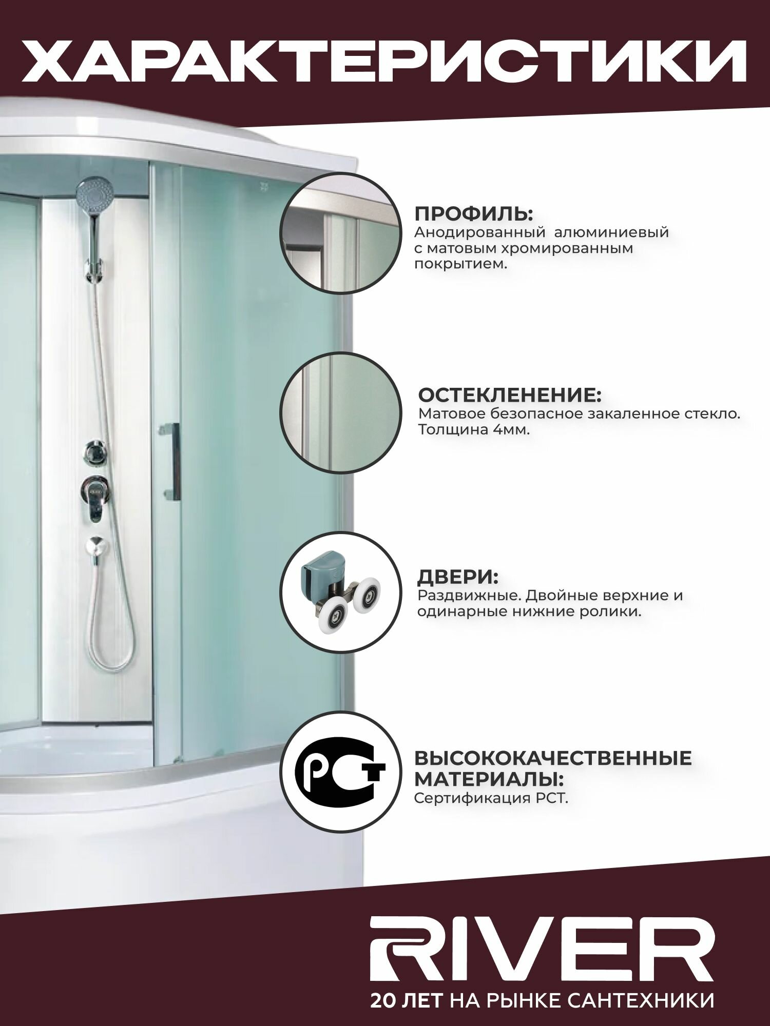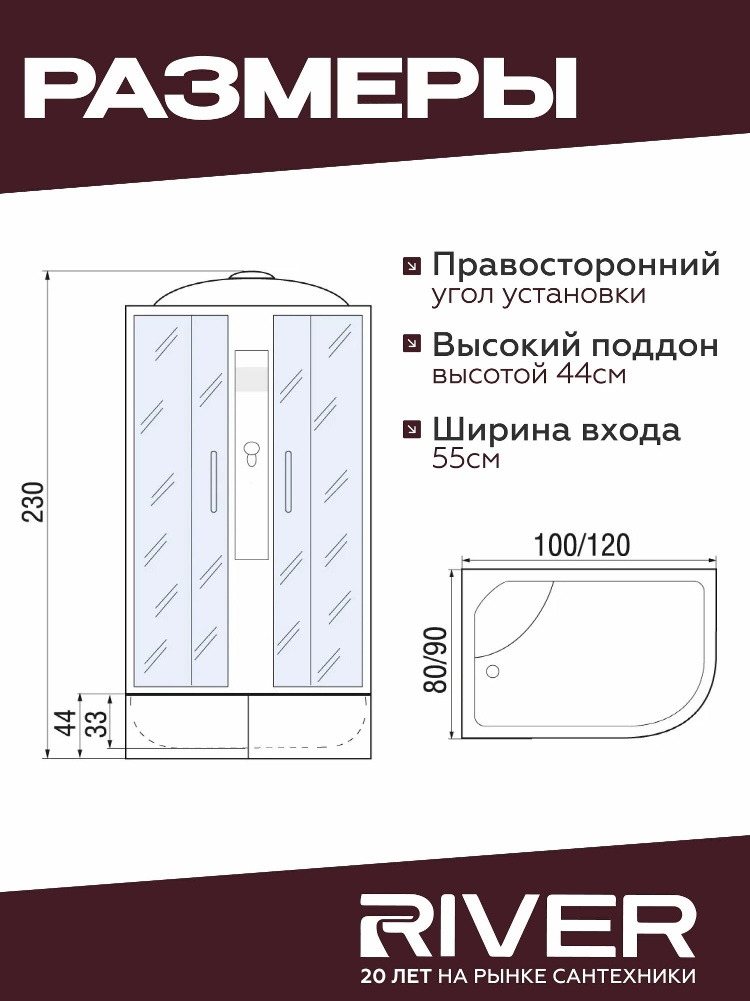 Душевая кабина River DESNA XL (100x80) высокий поддон, стекло матовое, правосторонняя интересное: