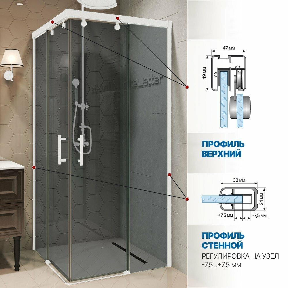 СохранитьДушевой уголок GWMPSLRC864 100x80 см, цвет фурнитуры белый матовый, цвет стекла графитовый, стекло закаленное 8 мм / 6 мм интересное: