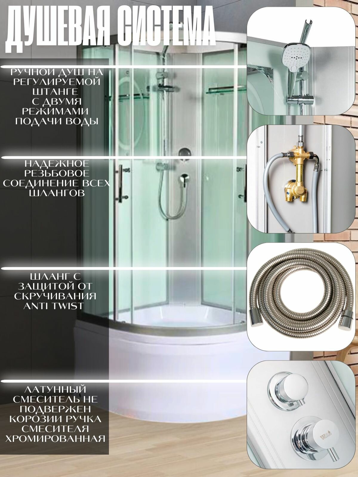 Душевая кабина 80х80 WeltWasser WW500 HALLE 801 801 без крыши, высокий поддон интересное: