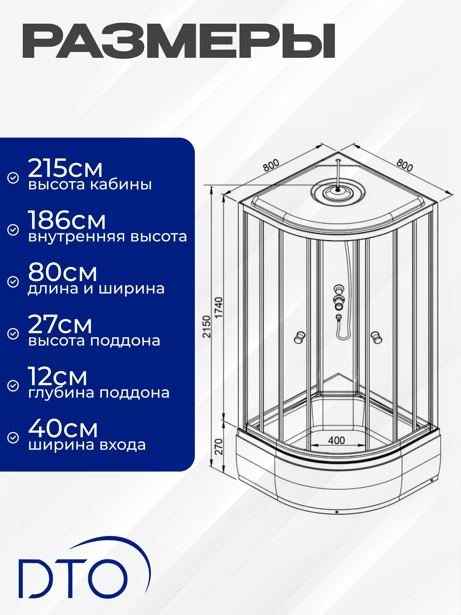 СохранитьДушевая кабина DTO (Deto) LM780 (80х80х215) с гидромассажем, средний поддон, стекло матовое, универсальная интересное: