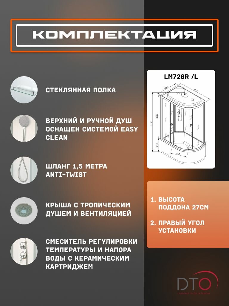 СохранитьДушевая кабина DTO (Deto) LM720R стандартная (120х80х215) средний поддон, стекло матовое, правосторонняя интересное: