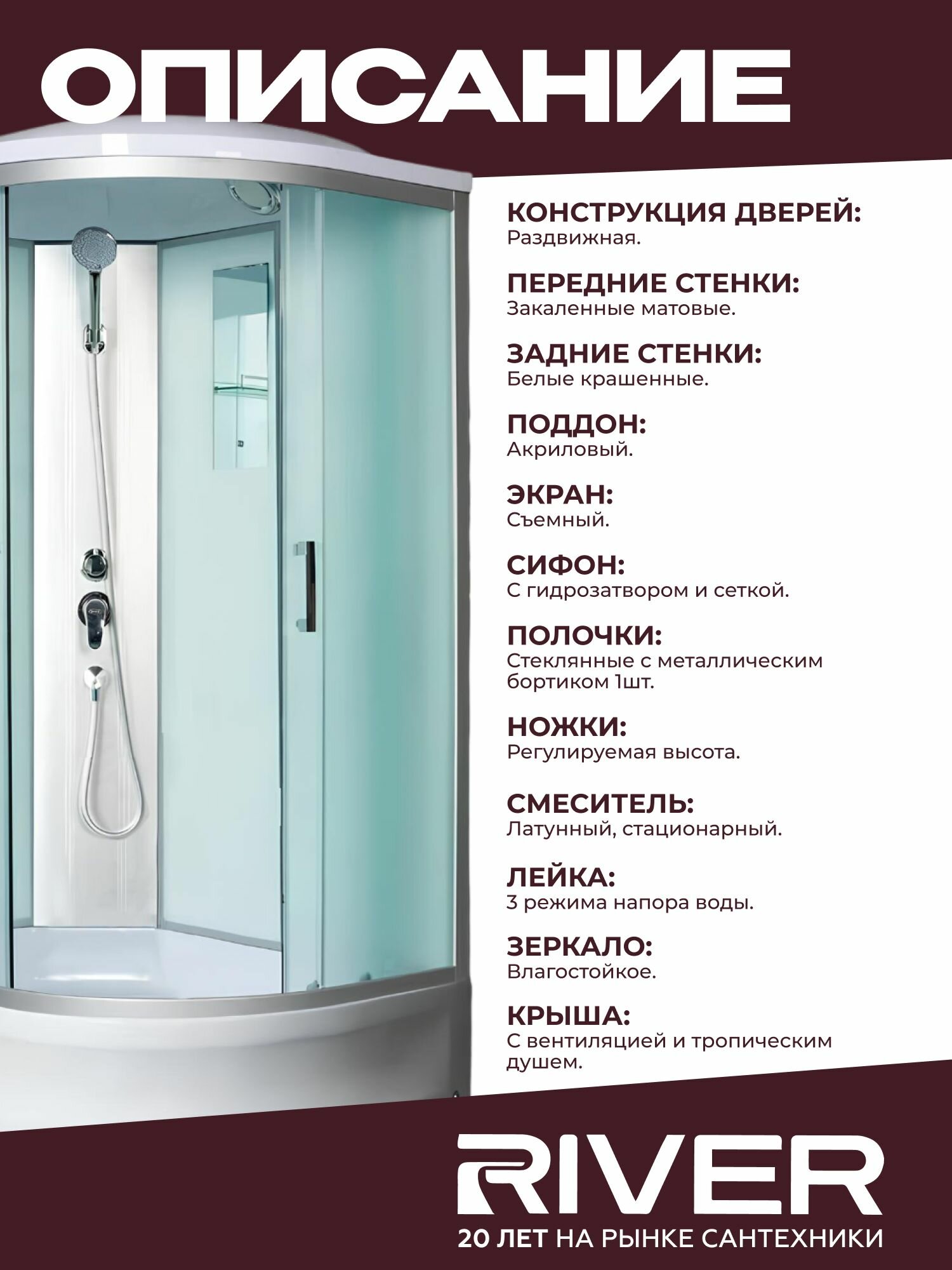 Душевая кабина River DESNA (100x80) средний поддон, стекло матовое, левосторонняя интересное: