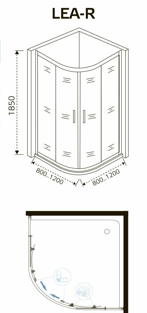 Купить Душевое ограждение уголок SANTREK Lea-R-900-C-Matt Black 900*900*1850 Радиус стекло Прозр 5мм, профиль Чёрный