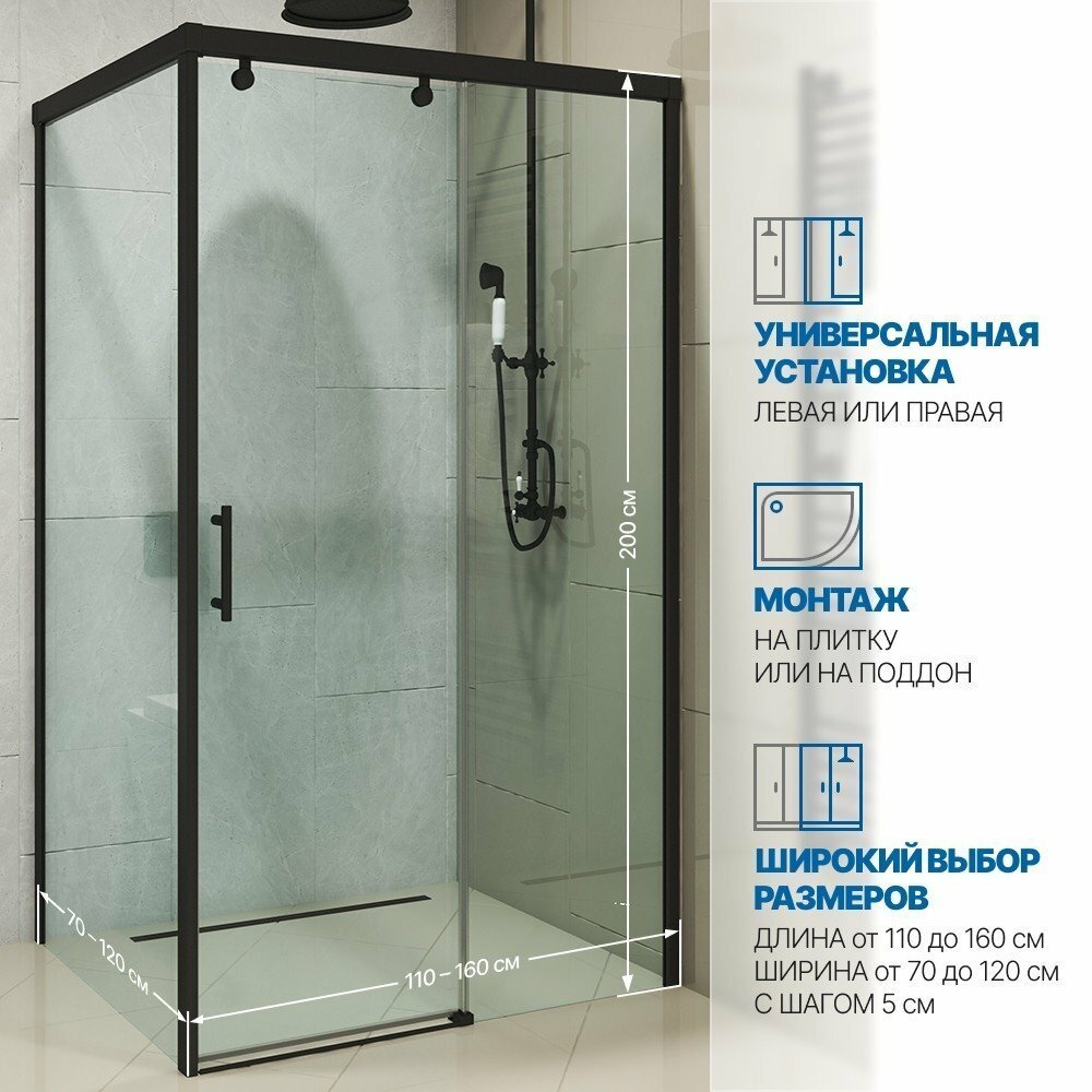 Купить Душевой уголок GWMPSLRC863A 70x120 см, цвет фурнитуры черный матовый, цвет стекла бесцветный, стекло закаленное 8 мм / 6 мм