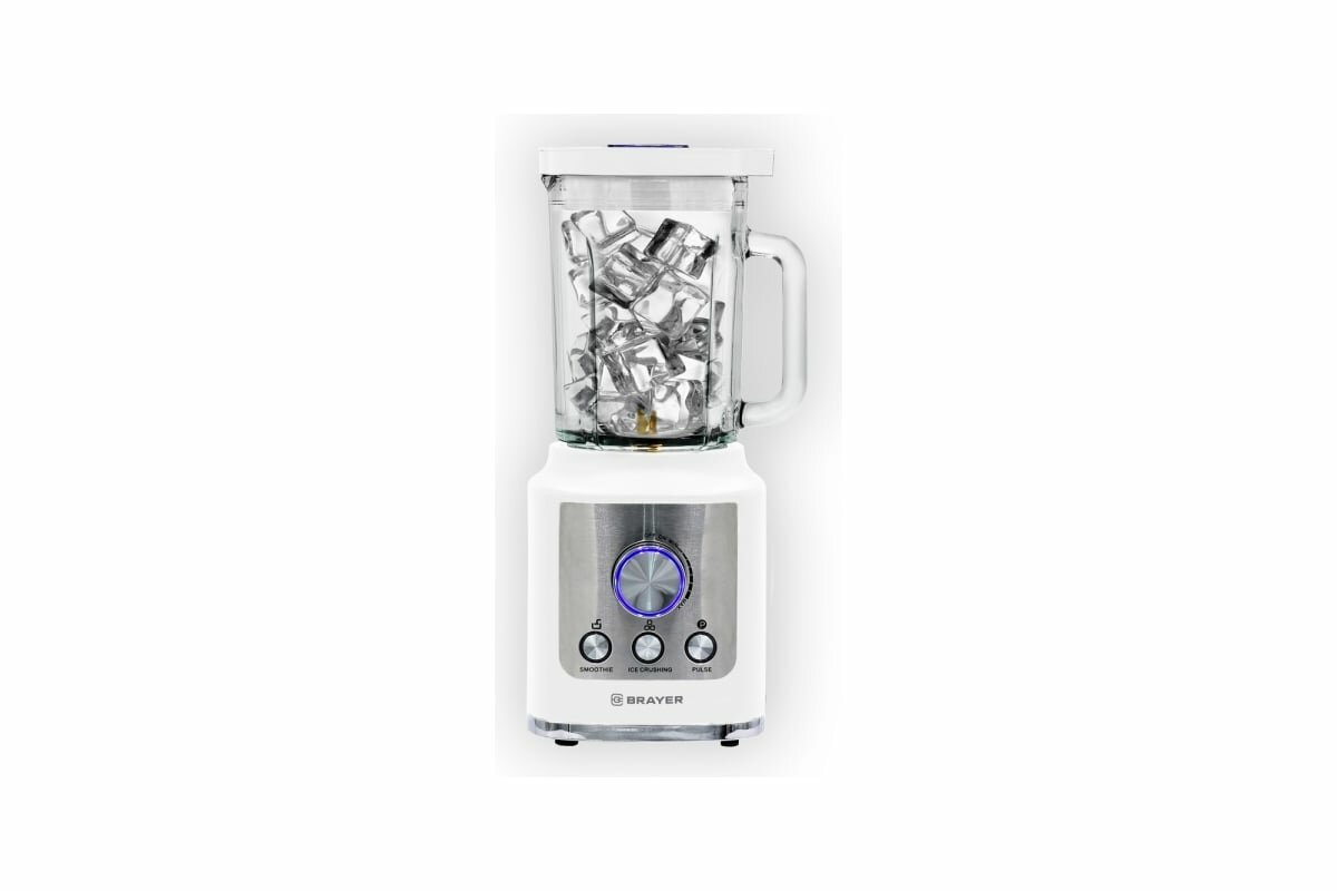Блендер BRAYER BR1200WH настольный, 1600 Вт, стекло, 1,8 л, 6 титановых ножей, импульс, колка льда