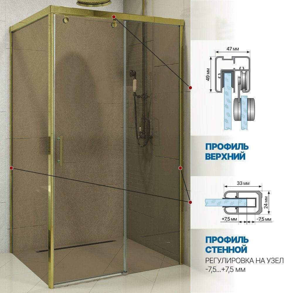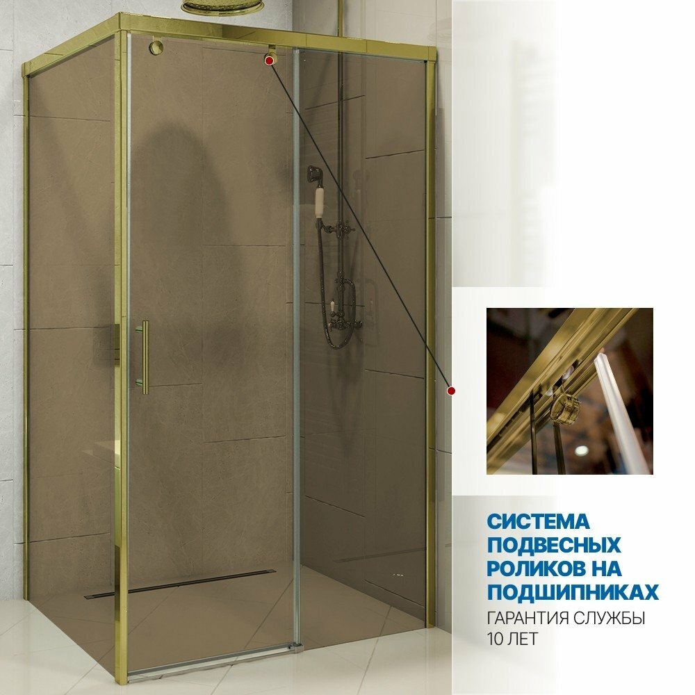СохранитьДушевой уголок GWMPSLRC863A 120x160 см, цвет фурнитуры золотой металлик, цвет стекла бронзовый, стекло закаленное 8 мм / 6 мм интересное: