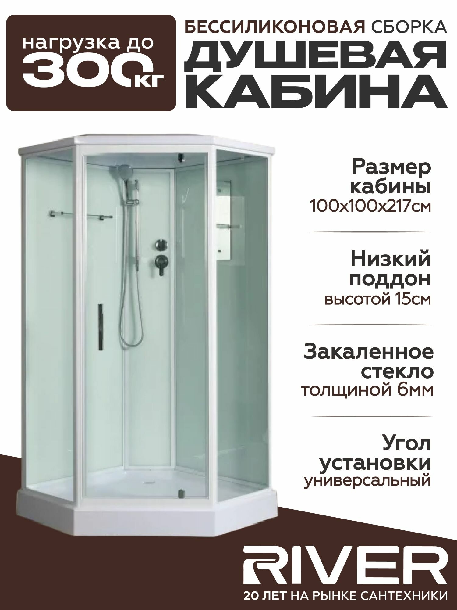 Душевая кабина River PENTA (100x100) низкий поддон, стекло прозрачное, универсальная интересное: