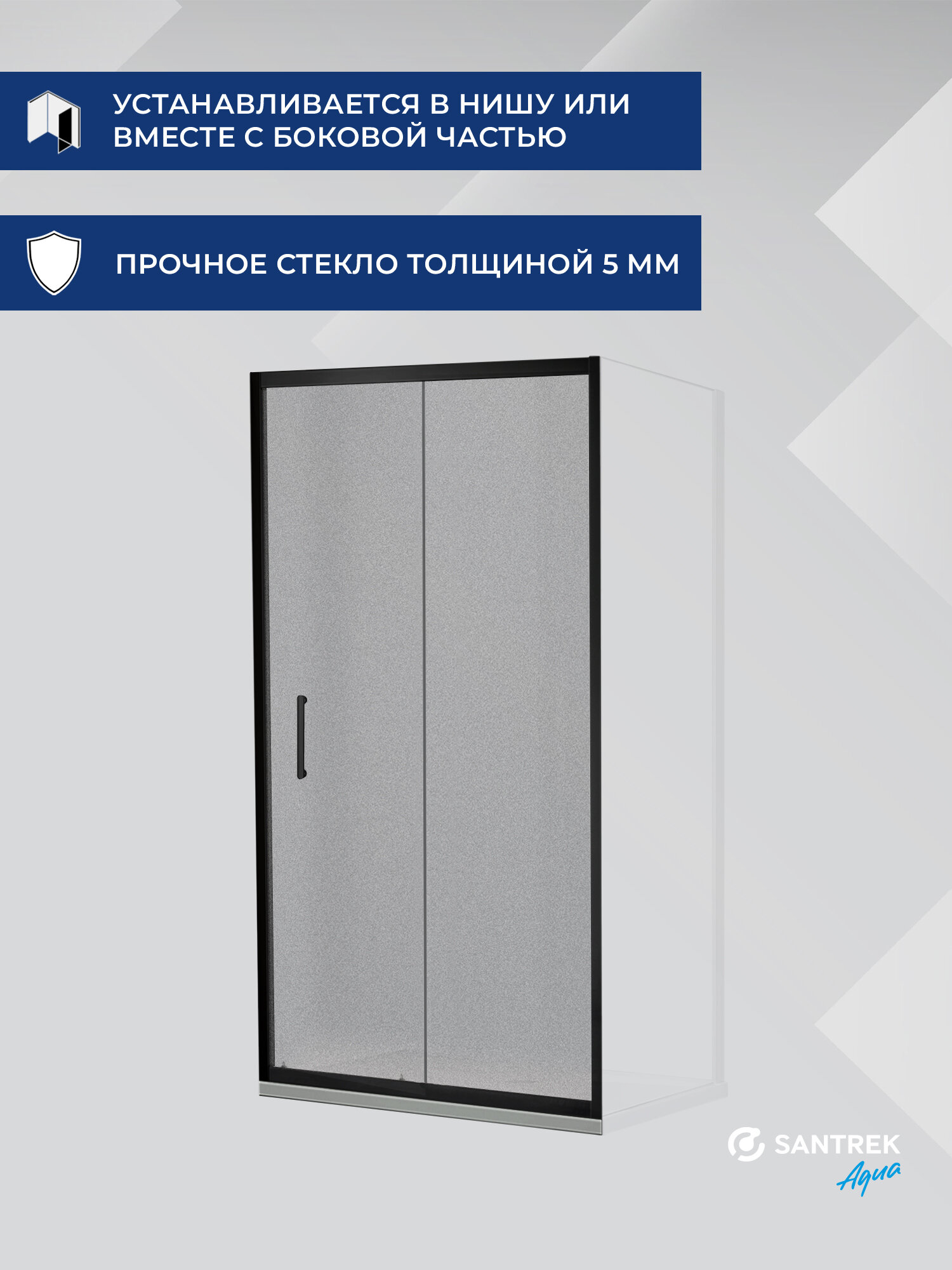 Душевое ограждение SANTREK - DF-1400-G-Matt Black 1400*1850 Прямое стекло Грейп 5мм, профиль Чёрный интересное: