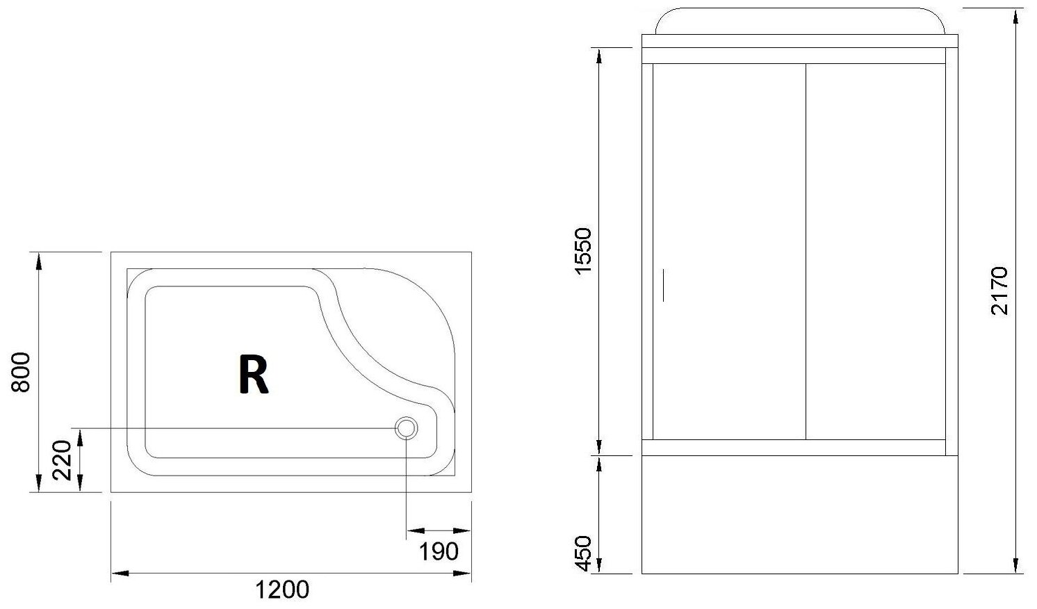 Душевая кабина RB 8120ВР1-М правая(матовое ) 120*80*217