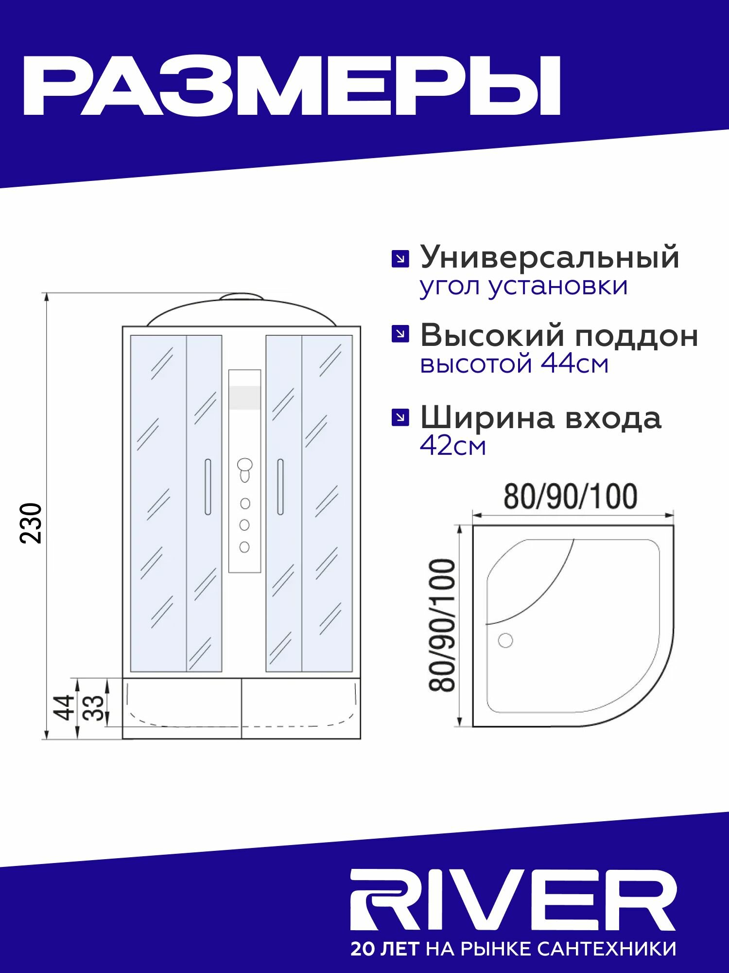 Душевая кабина River NARA XL (90x90) высокий поддон, стекло матовое, универсальная интересное: