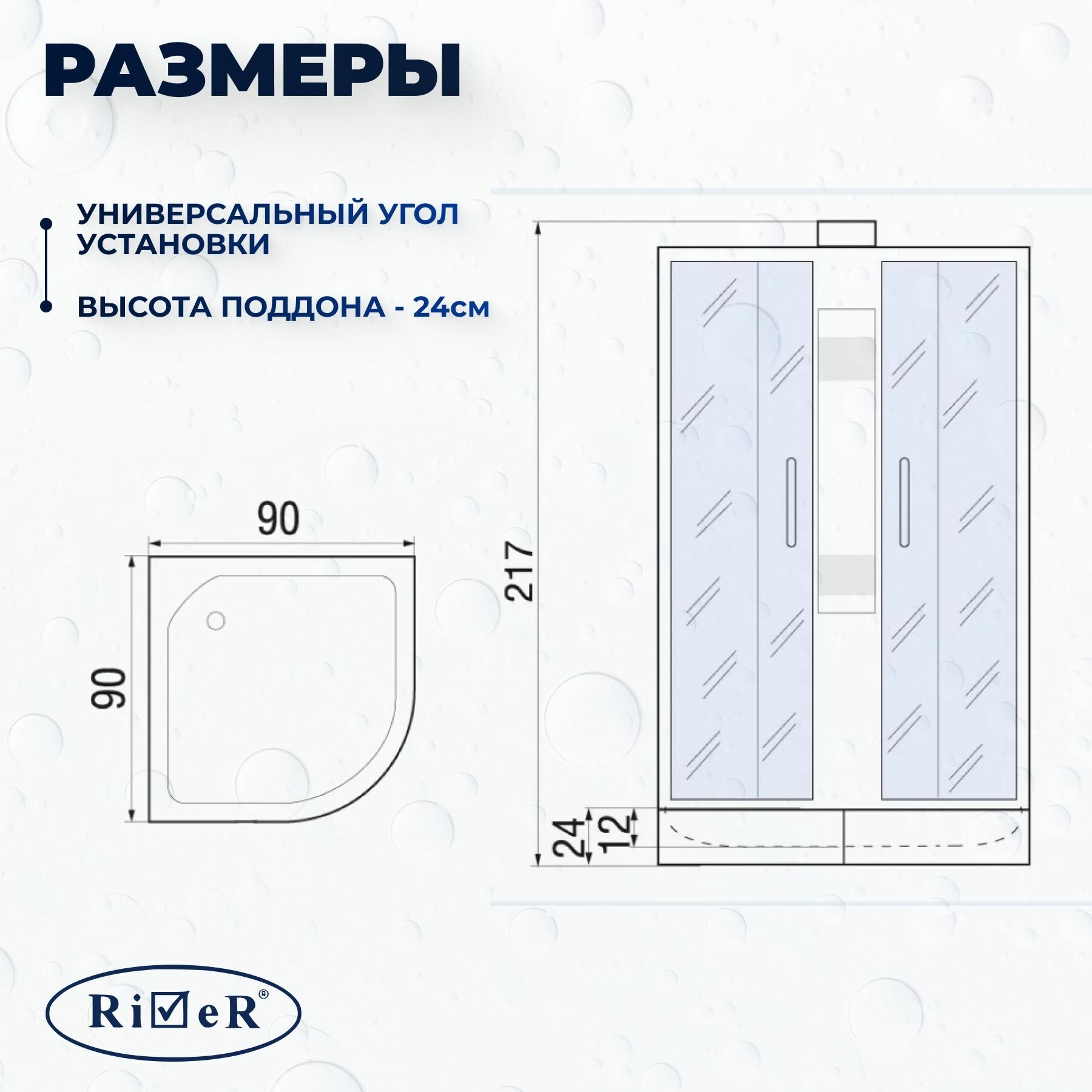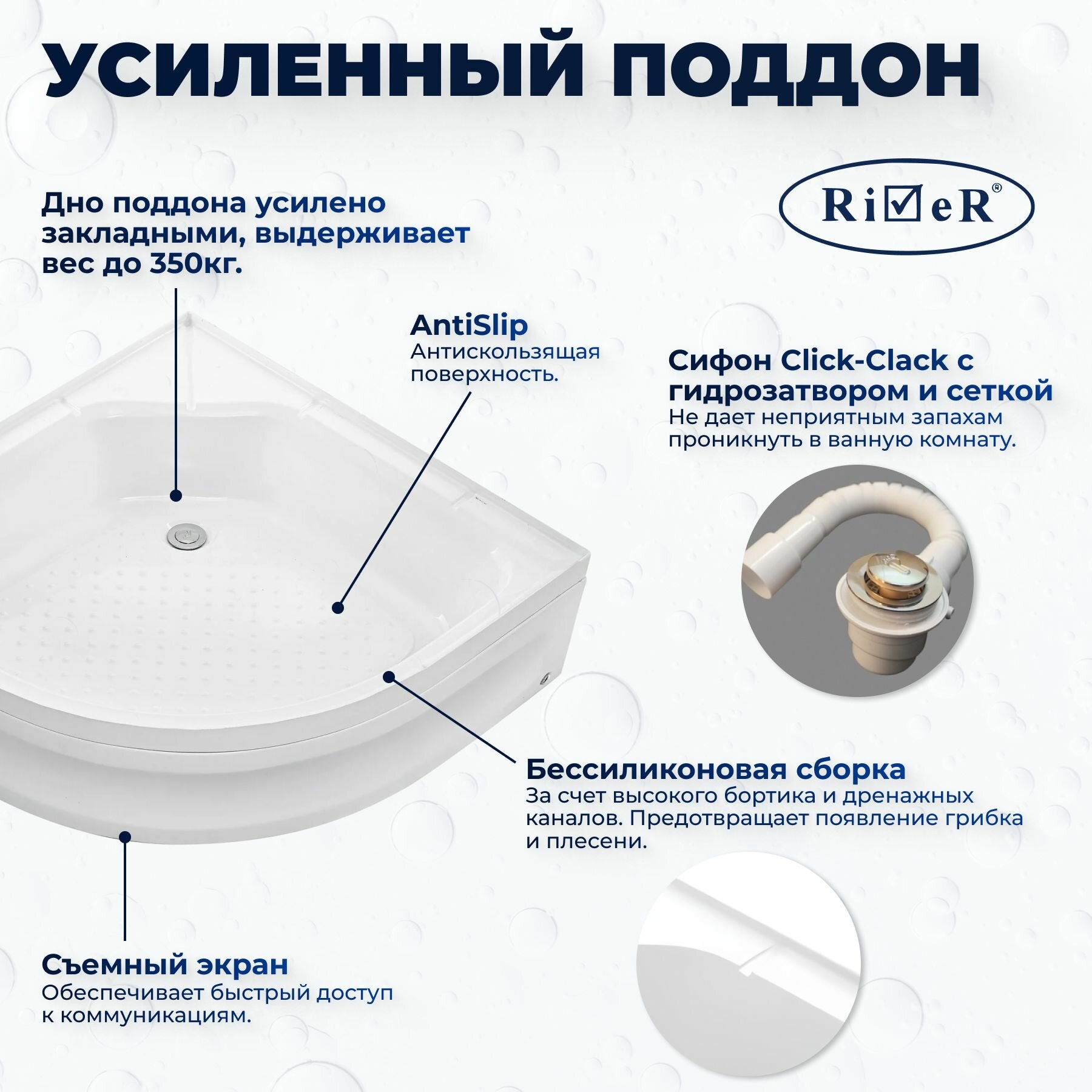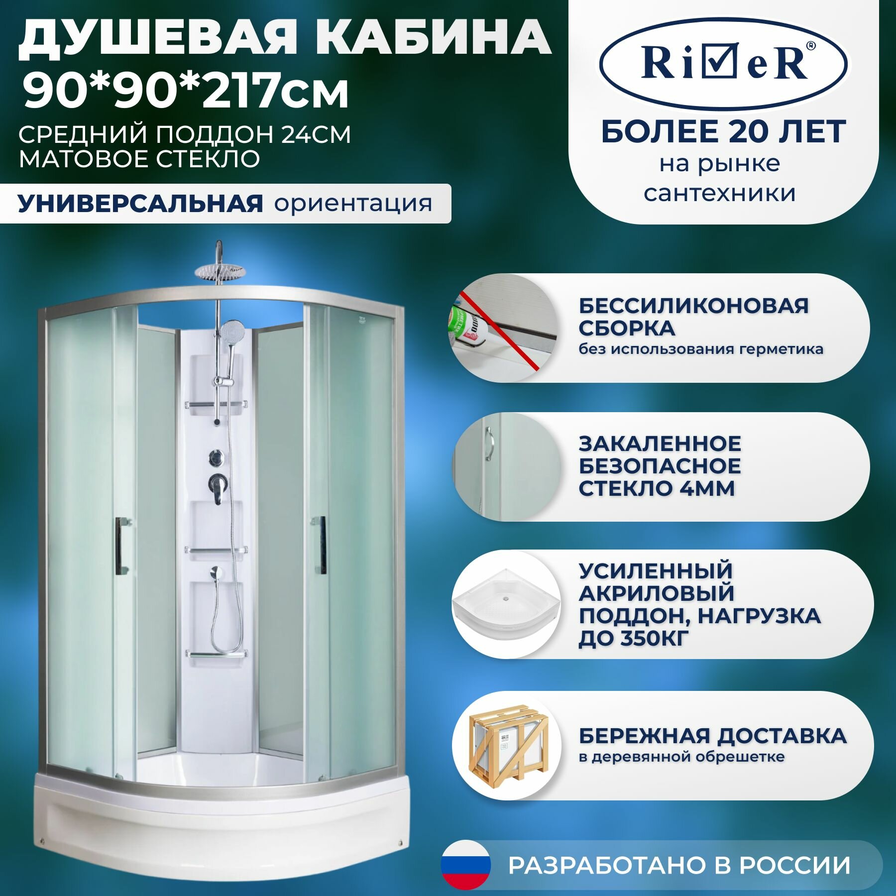 Душевая кабина River No Silicone (90x90) средний поддон, стекло матовое, универсальная, без крыши интересное: