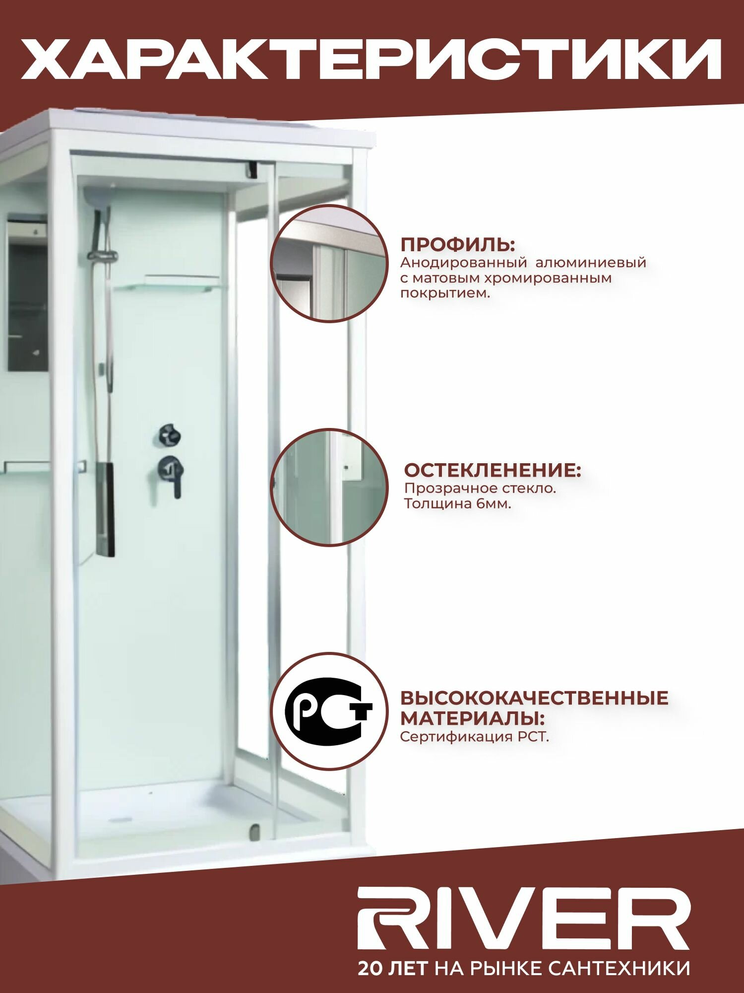 Душевая кабина River TANA (90x90) низкий поддон, стекло прозрачное, универсальная интересное: