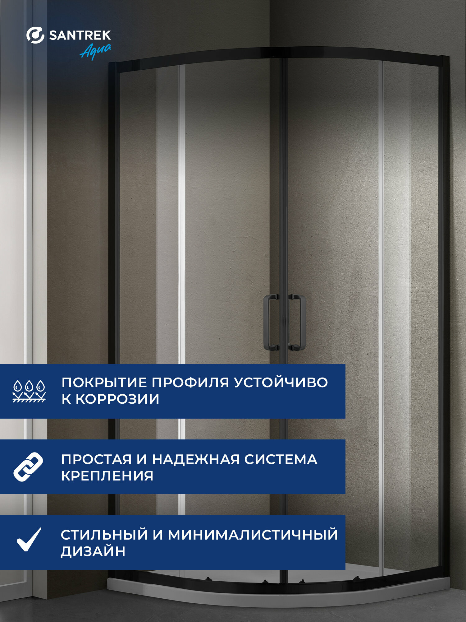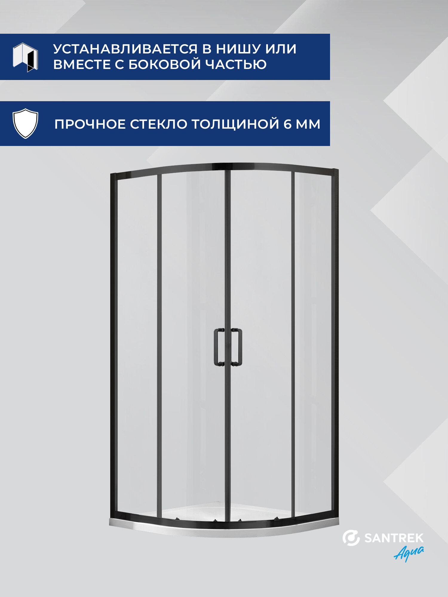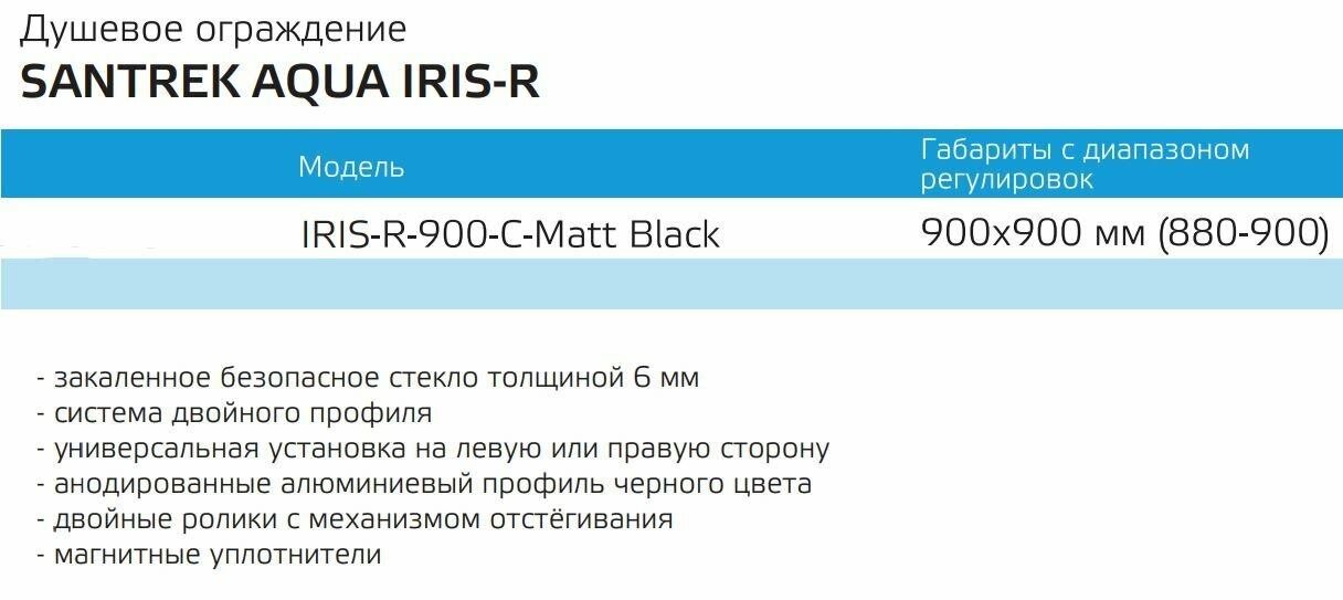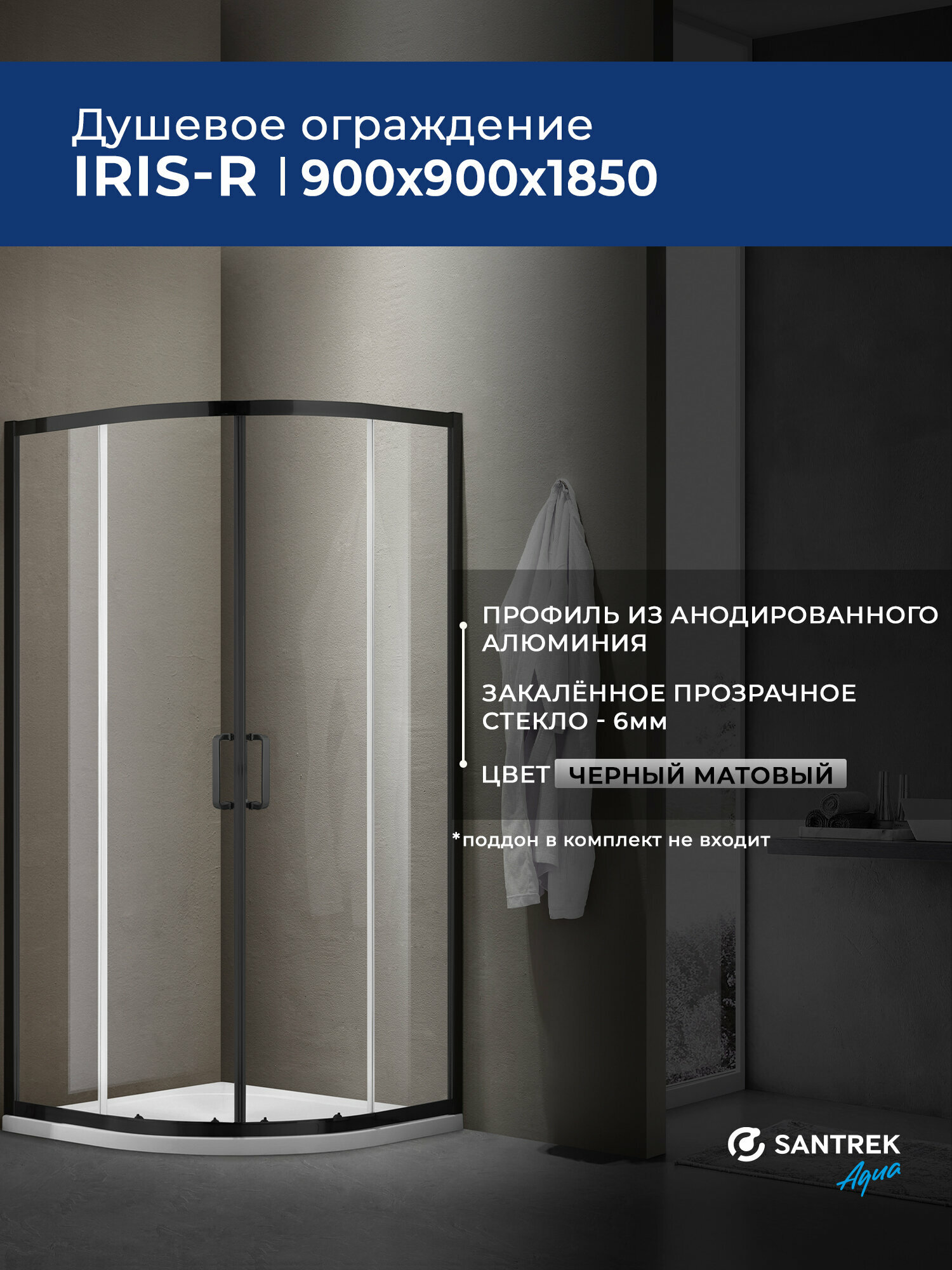 Душевое ограждение уголок SANTREK Iris-R-900-C 90*90*185 Радиус стекло Прозр 6мм, профиль Чёрный интересное: