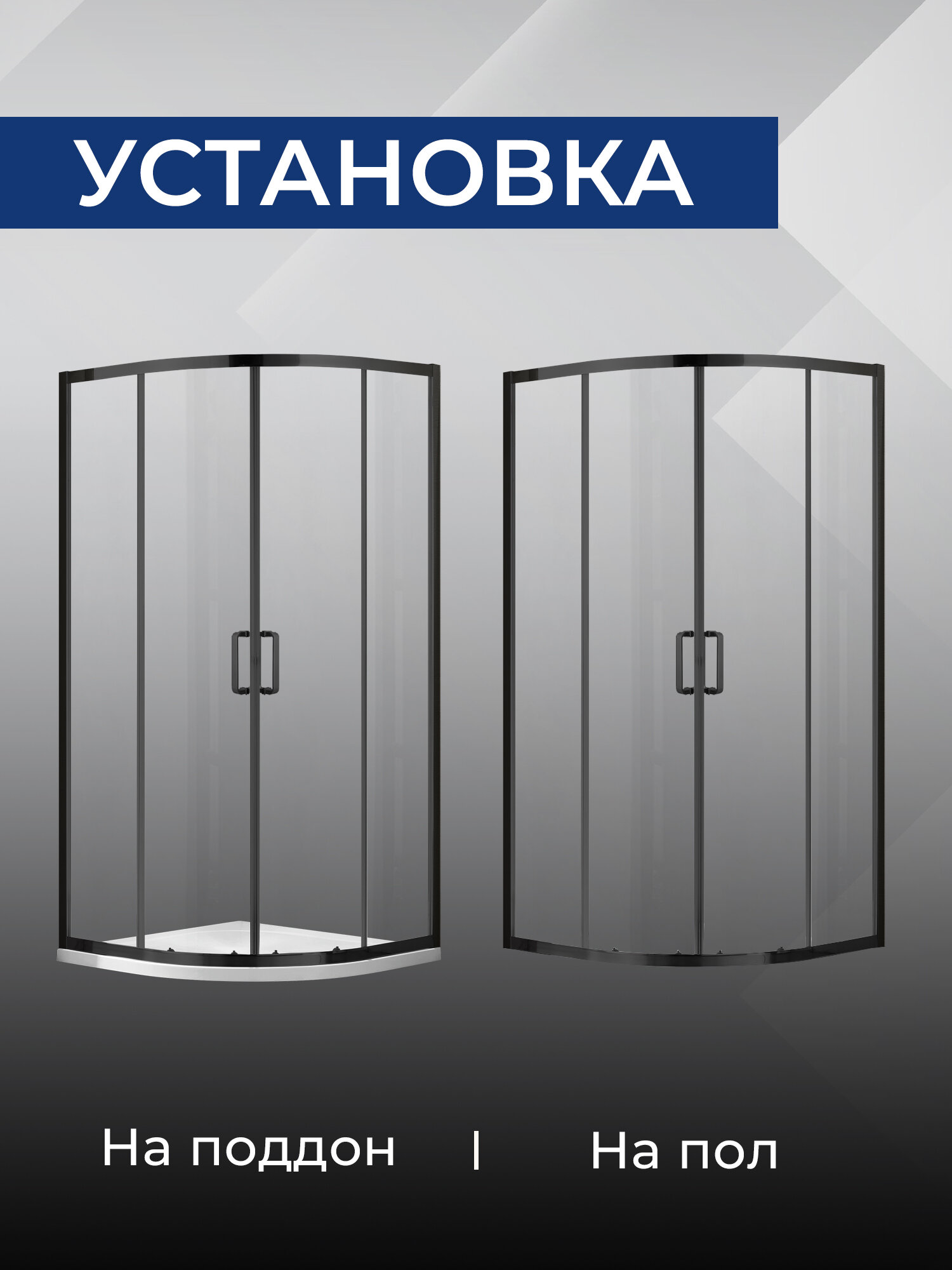 Купить Душевое ограждение уголок SANTREK Iris-R-900-C 90*90*185 Радиус стекло Прозр 6мм, профиль Чёрный