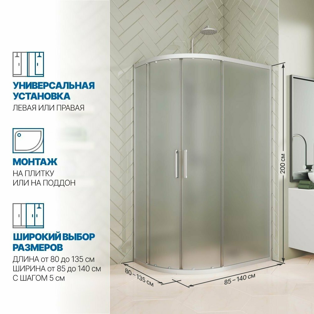 Душевой уголок GWMPKB018RB 135x85 см, цвет фурнитуры хром матовый, цвет стекла матовый, стекло закаленное 6 мм