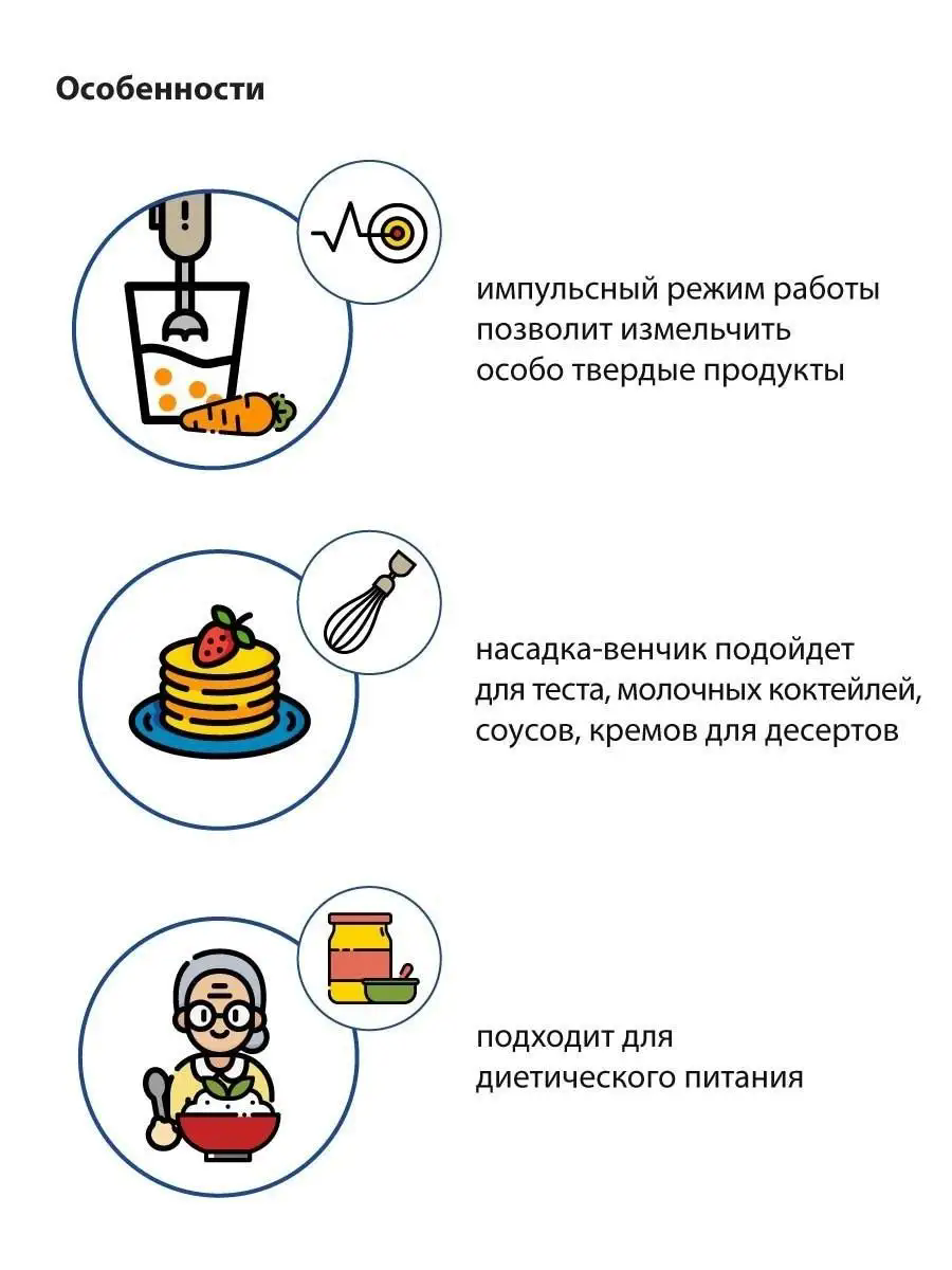 Cozy Home Premium / Погружной блендер 3в1 / Электрический кухонный измельчитель продуктов / Чоппер / Кухонный комбайн