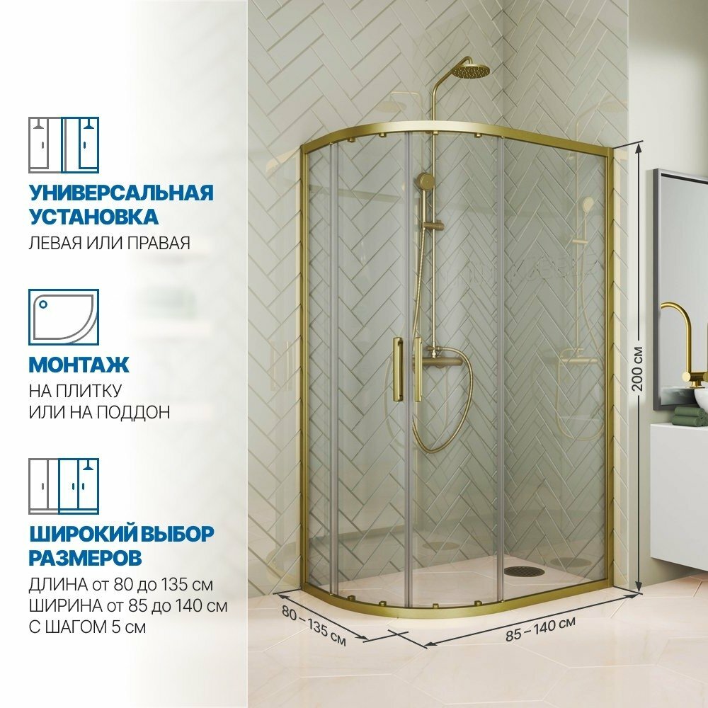 Душевой уголок GWMPKB018RB 135x85 см, цвет фурнитуры бронзовый, цвет стекла бесцветный, стекло закаленное 6 мм
