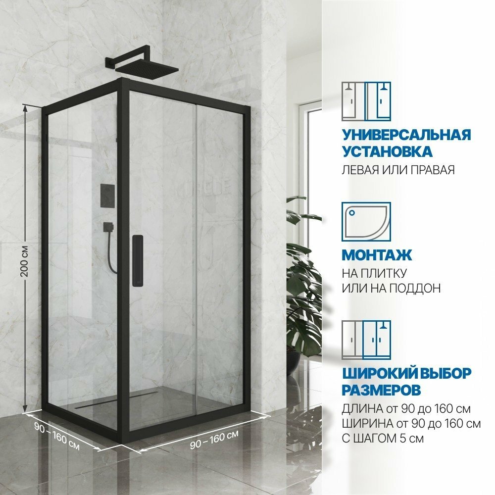 Душевой уголок GWMPKB019S 155x155 см, цвет фурнитуры черный матовый, цвет стекла бесцветный, стекло закаленное 6 мм