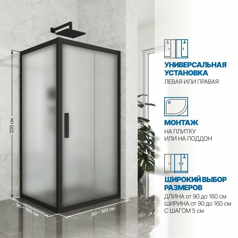 Душевой уголок GWMPKB019S 160x160 см, цвет фурнитуры черный матовый, цвет стекла матовый, стекло закаленное 6 мм