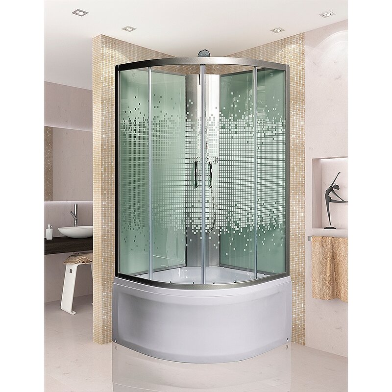 Душевые кабины Мономах 10000005802 без крыши , профиль хром , стекло прозрачное с рисунком мозаика