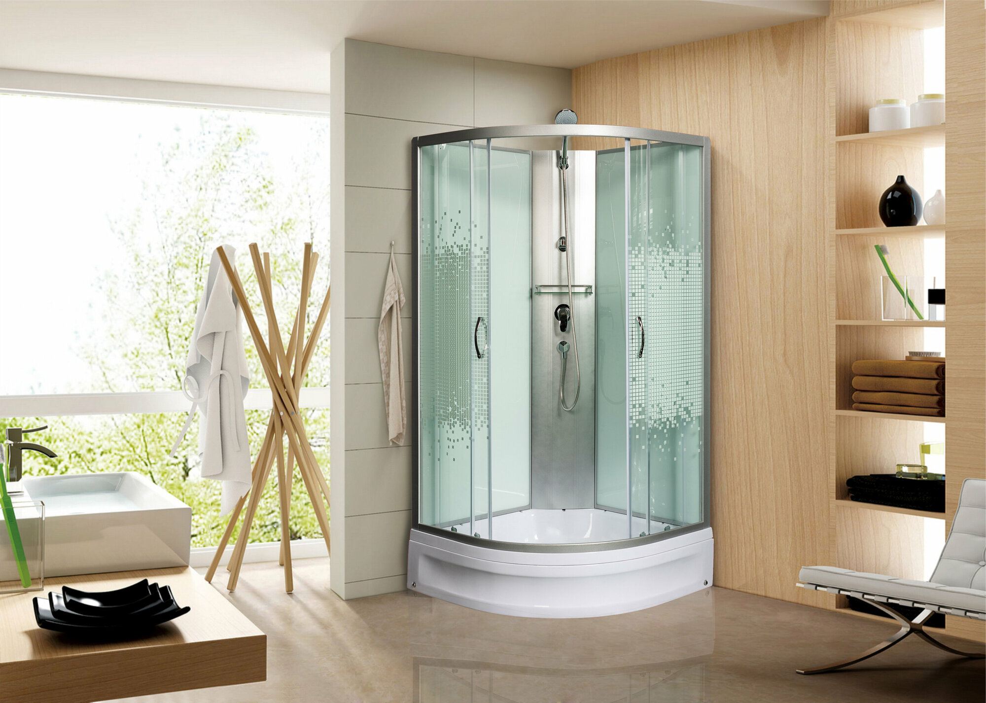 СохранитьДушевые кабины Мономах 10000005802 без крыши , профиль хром , стекло прозрачное с рисунком мозаика интересное: