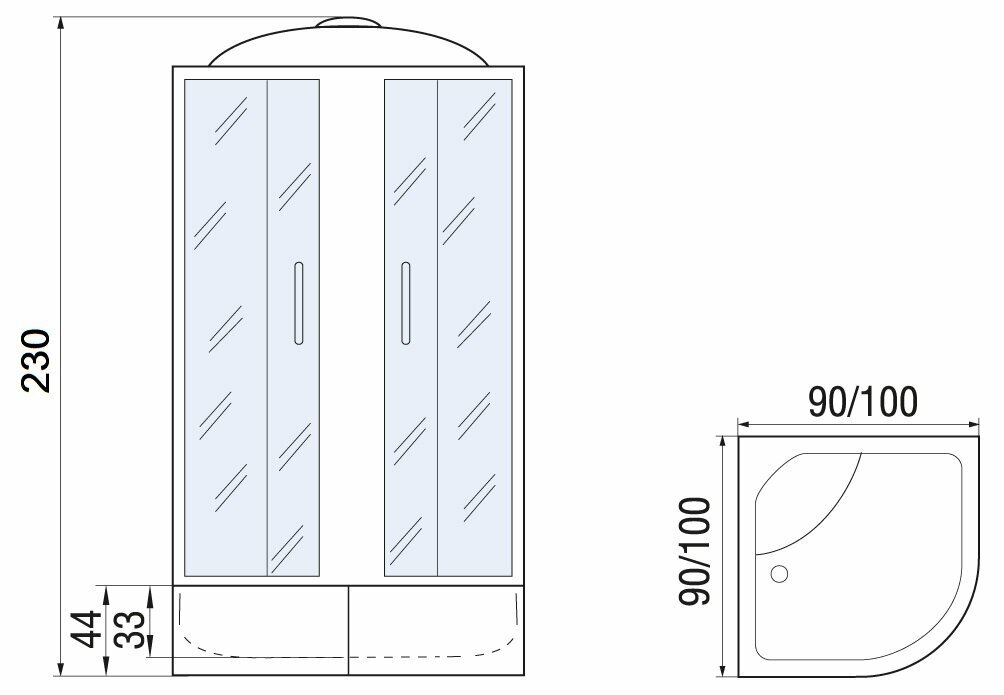 Душевая кабина мономах XL Б/К 100/44 С МЗ 10000012112 полукруглая