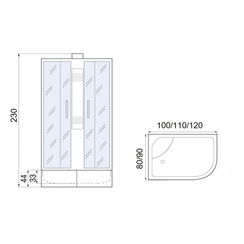Душевая кабина мономах XL 120/90/44 МЗ R 10000012124 асимметричная