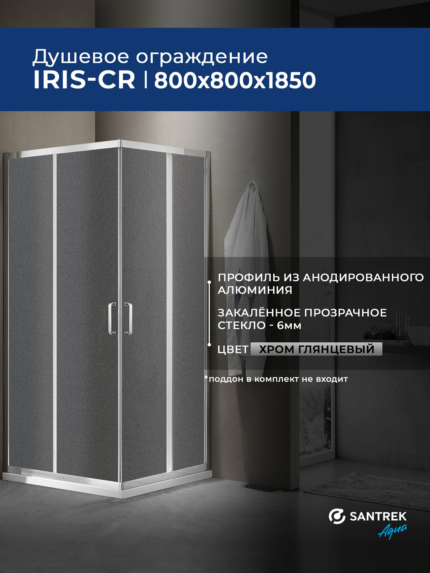 Купить Душевое ограждение уголок SANTREK Iris-CR-800-G-Chrome 800*800*1850 Г-обр. стекло Грейп 6мм, профиль Хром