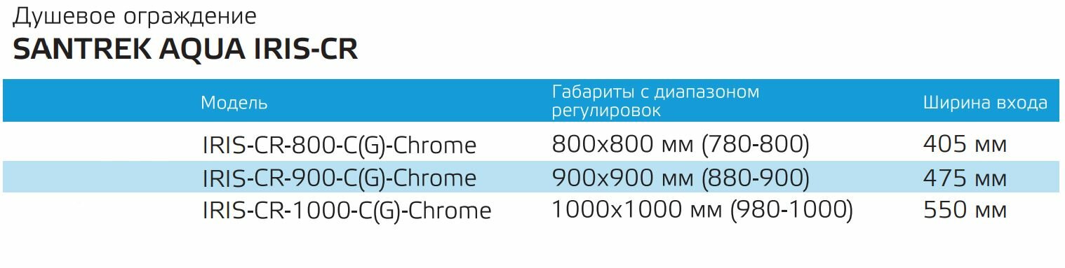 Душевое ограждение уголок SANTREK Iris-CR-1000-C-Chrome 1000*1000*1850 Г-обр. стекло Прозр 6мм, профиль Хром
