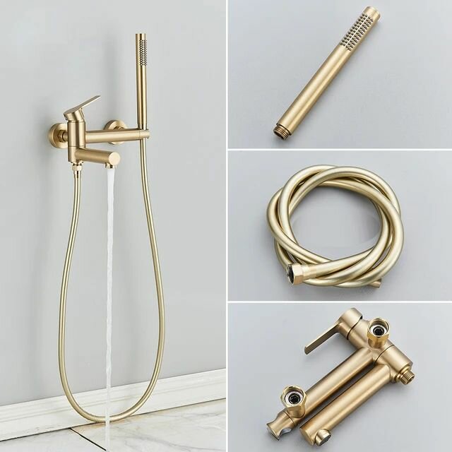 Встраиваемый душевой комплект смеситель в ванну с лейкой Southlife матовое золото интересное:
